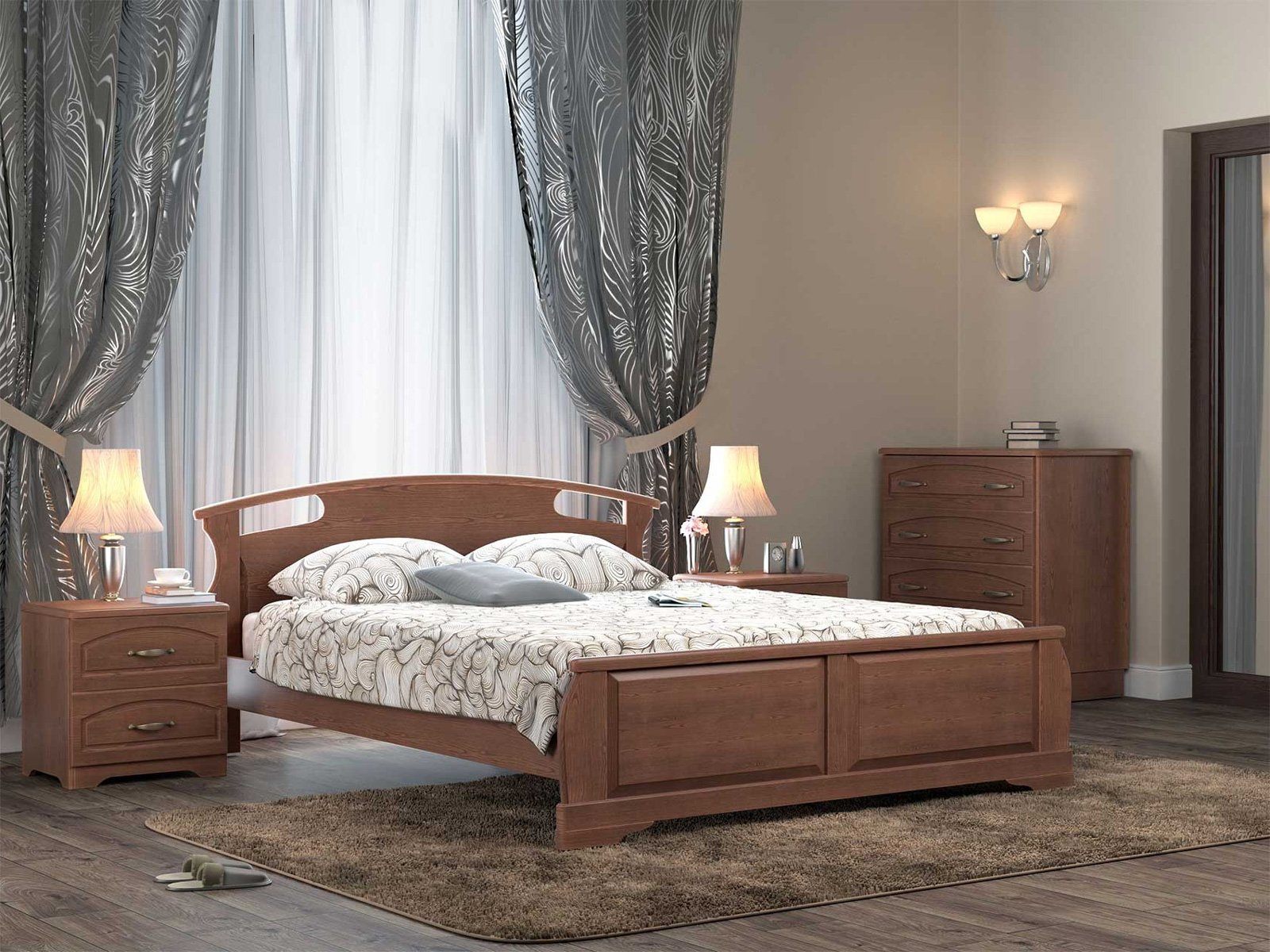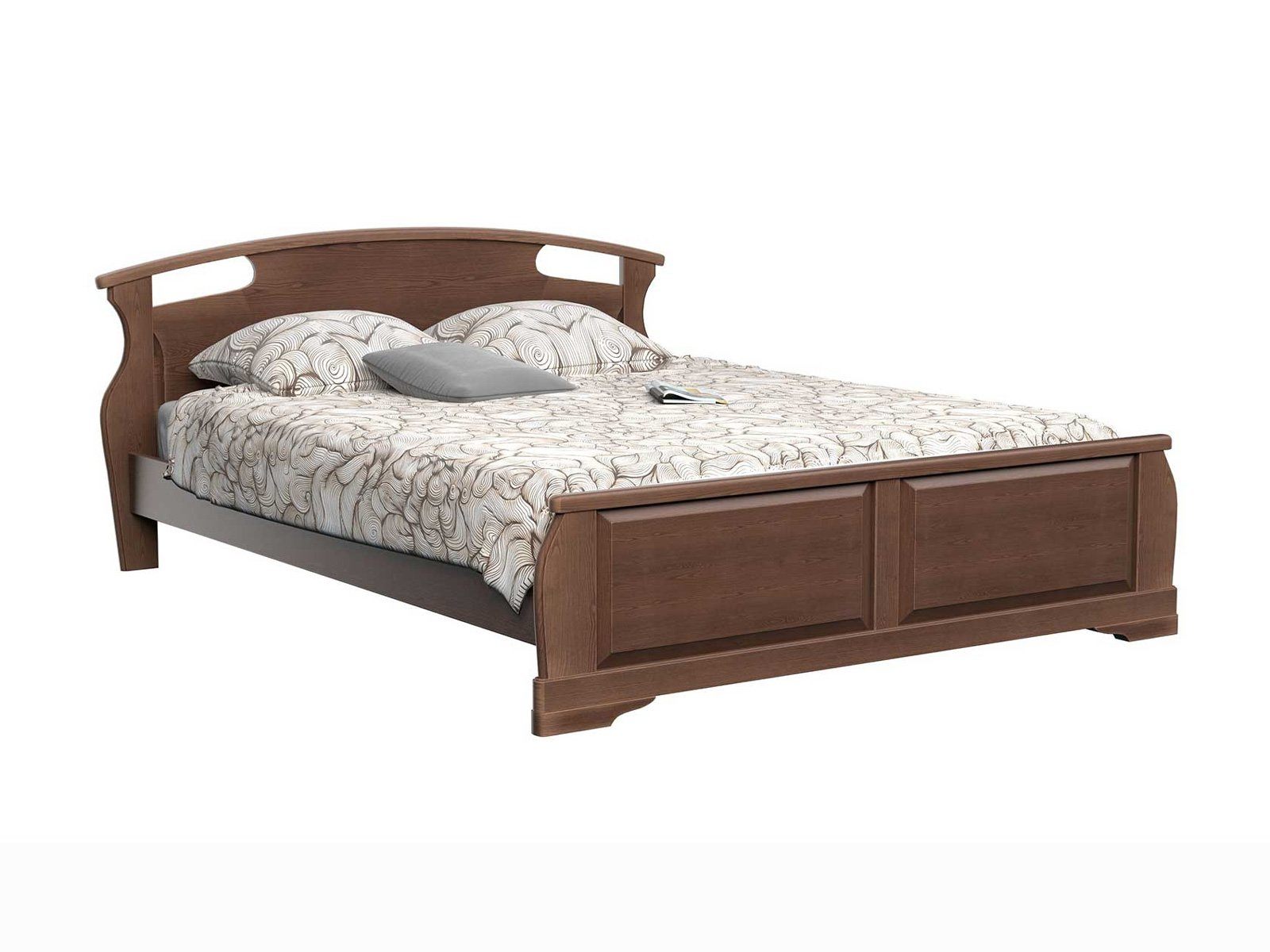 Двуспальная шикарная кровать Афродита 1 из массива бука с низким изножьем - это лучший выбор для Вас и Вашей семьи. Сложные гнуто-клееные элементы декора кровати, превосходно впишутся в любой интерьер. Кровать из массива ценной породы дерева – бука - гарантия экологической чистоты в Вашем доме. Такие кровати отличаются долговечностью и надежностью. Вся мебель покрывается высококачественным полиуретановым лаком (Испания), что защищает поверхность от царапин и прочих повреждений.