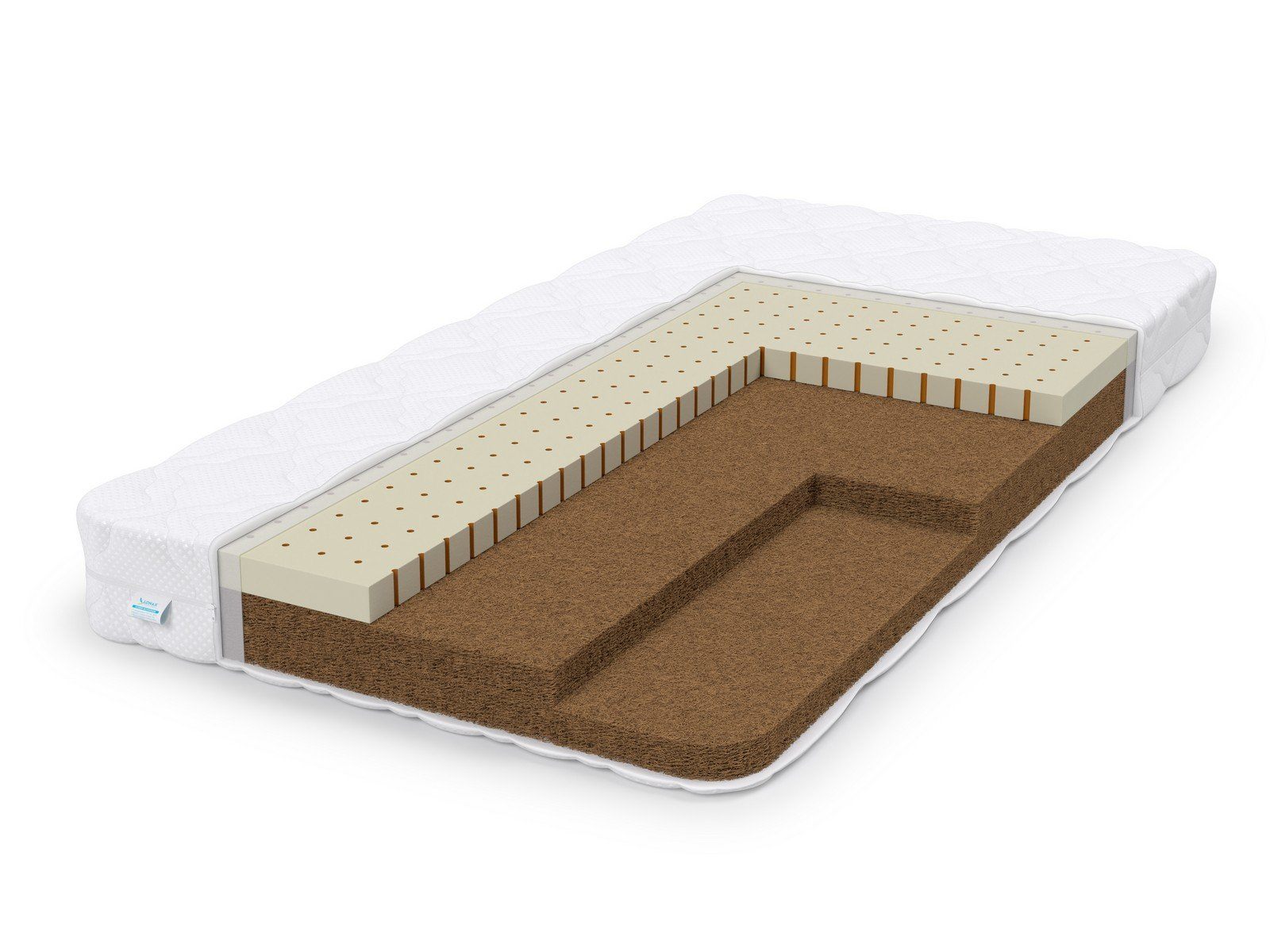 Замечательная двустороння модель, с разной жесткостью сторон. Одна сторона матраса высокой жесткости, за счет использования латексированной кокосовой койры. Это экологически чистый, натуральный, гигиеничный и долговечный природный материал, который обладает высокими ортопедическими и анатомическими свойствами, а так же койра отлично вентилируется, не впитывает запахов и не гниет. Другая сторона модели имеет среднюю жесткость, благодаря добавлению натурального латекса — уникального гипоаллергенного материала. Он имеет несколько зон жесткости, специально рассчитанных на правильное распределение нагрузки тела. Вес тела равномерно распределяется, и позвоночник принимает физиологически правильное положение, что способствует полному расслаблению и снятию мышечного напряжения. Латекс поддерживает тело, не передавливает кровеносные сосуды, не нарушая кровообращения, таким образом, снимая нагрузку с сердечной мышцы. Такой матрас подойдет детям от 5 до 12 лет.