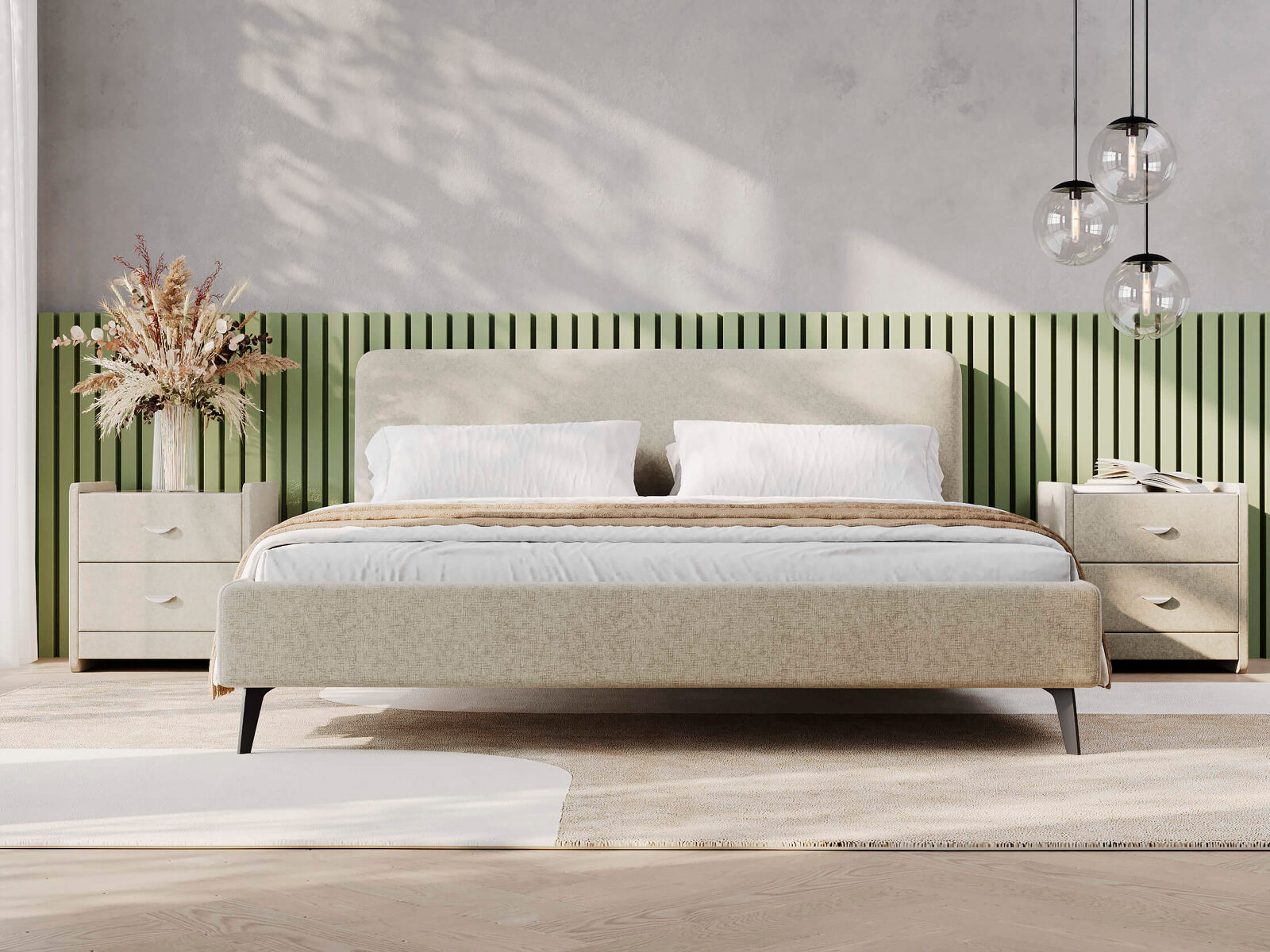 Кровать Boston соответствует самым модным тенденциям в направлении - интерьерные кровати. В зависимости от ткани обивки Boston впишется в современные интерьеры, интерьеры в стиле лофт. Сочетание формы изголовья с тонкими царгами и металлическими высокими опорами черного цвета подчеркивает ее выразительность. Кровать Boston выглядит легко и лаконично. Негабаритное изголовье средней высоты без декора, задняя часть спинки выполнена в основной ткани, благодаря этому кровать можно установить в центре комнаты. Увеличенная прочность кровати достигается за счет металлического каркаса по периметру. Модель укомплектована ортопедическим основанием с ламелями. Опоры металлические черного цвета, высота 16 см. Расстояние от пола до царг способствует легкой уборке под кроватью, в том числе роботом – пылесосом.