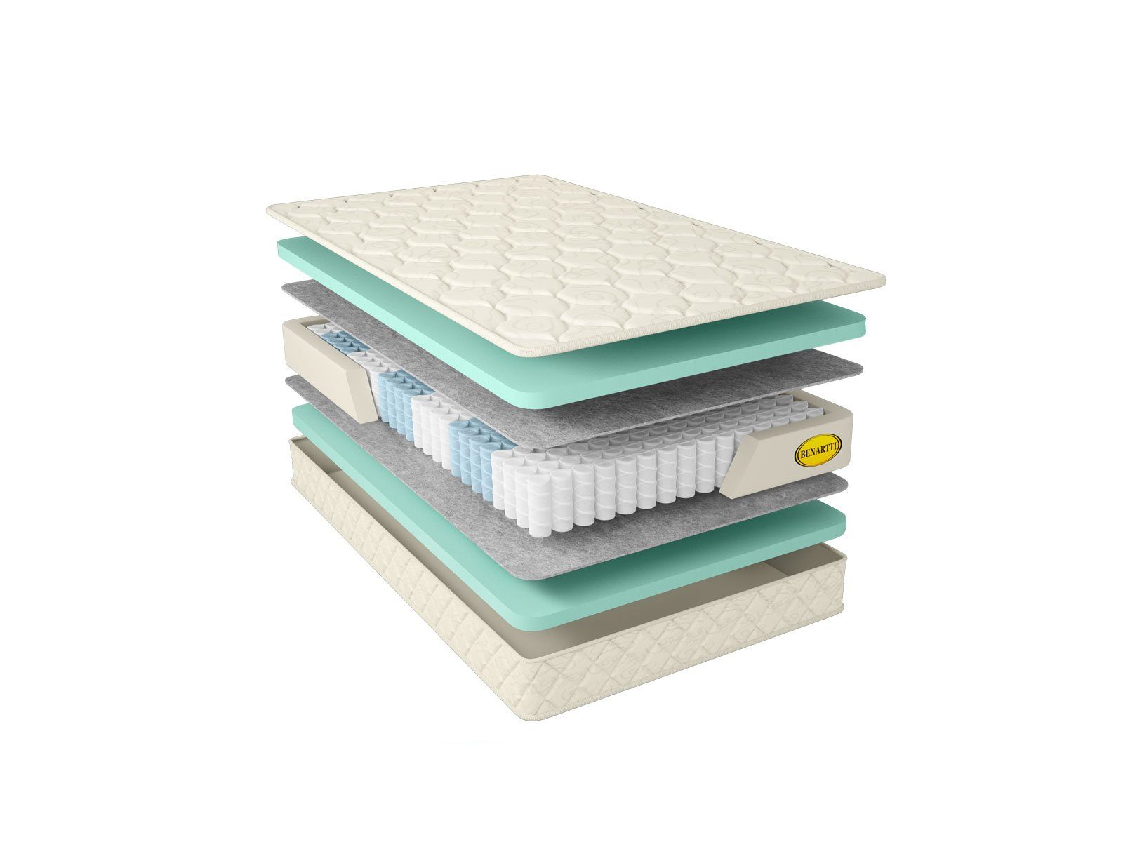 Чехол матраса также изготавливается из безопасных и комфортных материалов. Жаккардовая ткань содержит хлопковое волокно, что позволяет поверхностям «дышать», а холлконовый слой подкладки является экологически чистым материалом. Их простёгивают вместе, чтобы матрас обрёл пышность и объёмную фактуру.