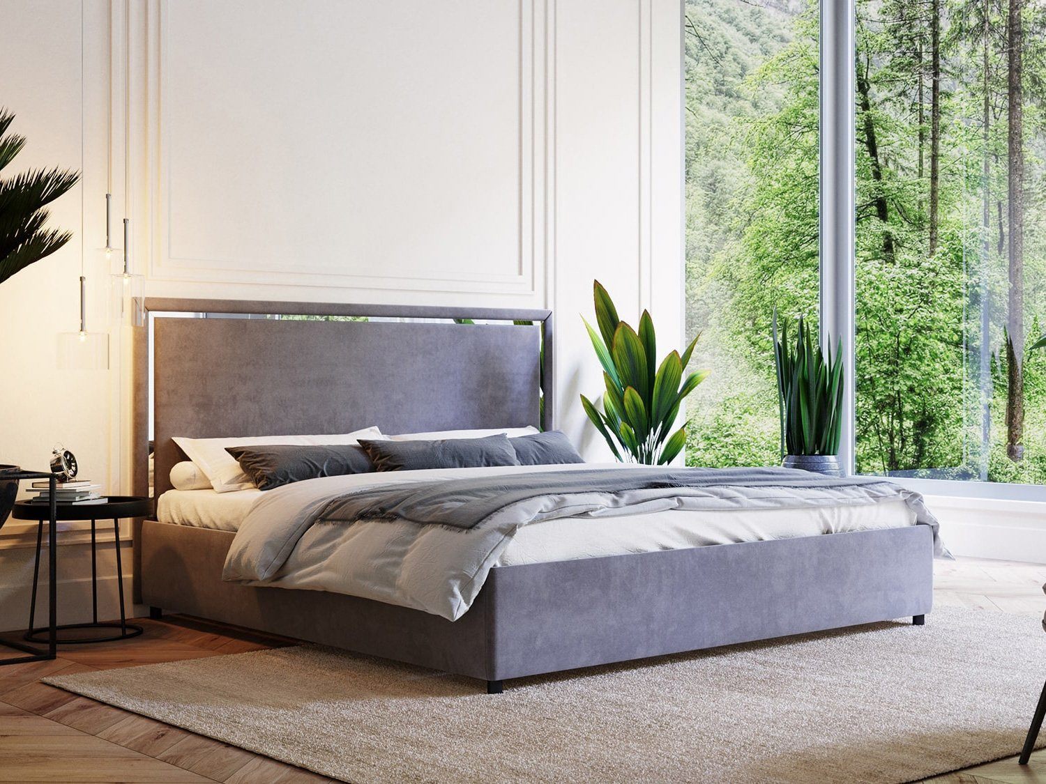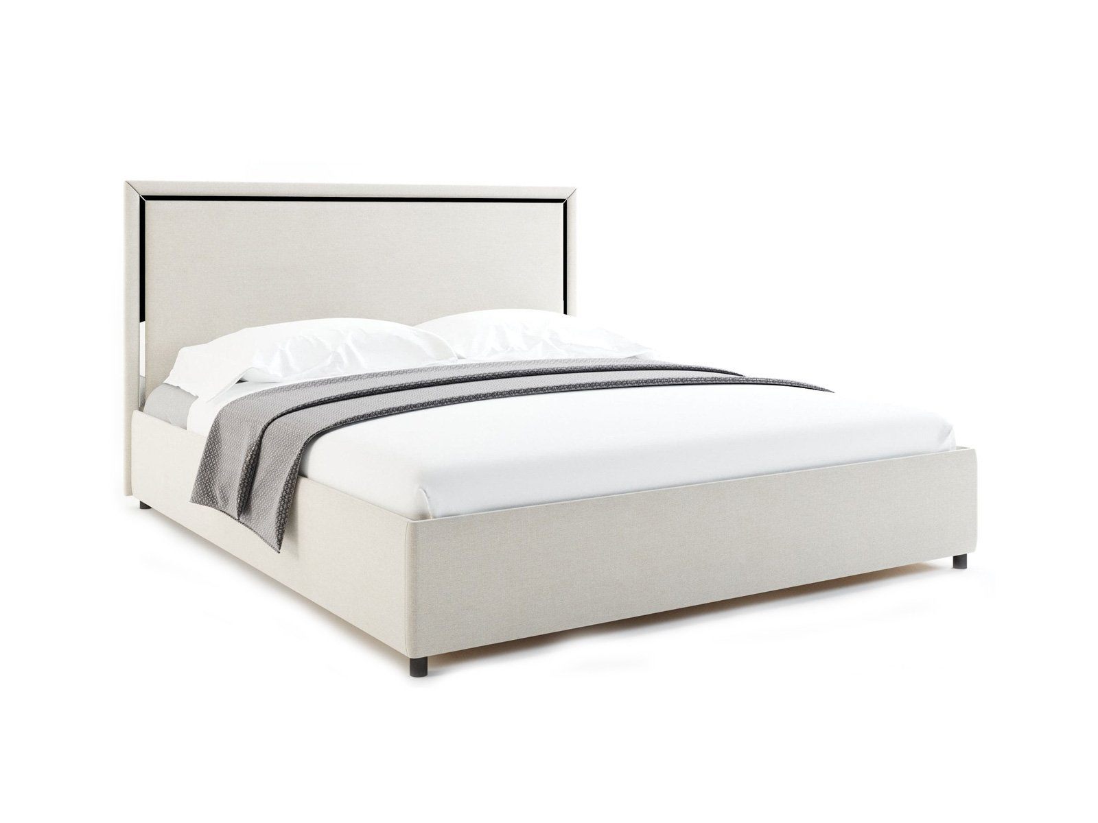 Спейс — кровать в современном стиле. Прямое мягкое изголовье украшено тонкой зеркальной вставкой по периметру.