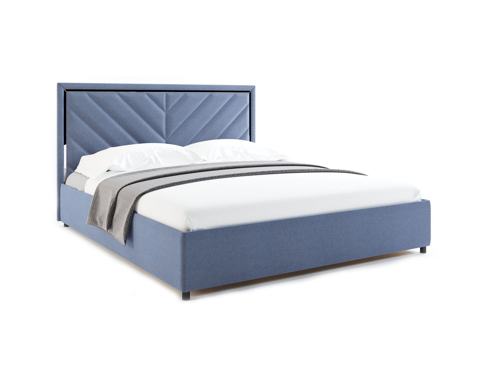 Кровать комплектуется металлическим основанием с подъемным механизмом и ящиком для белья.