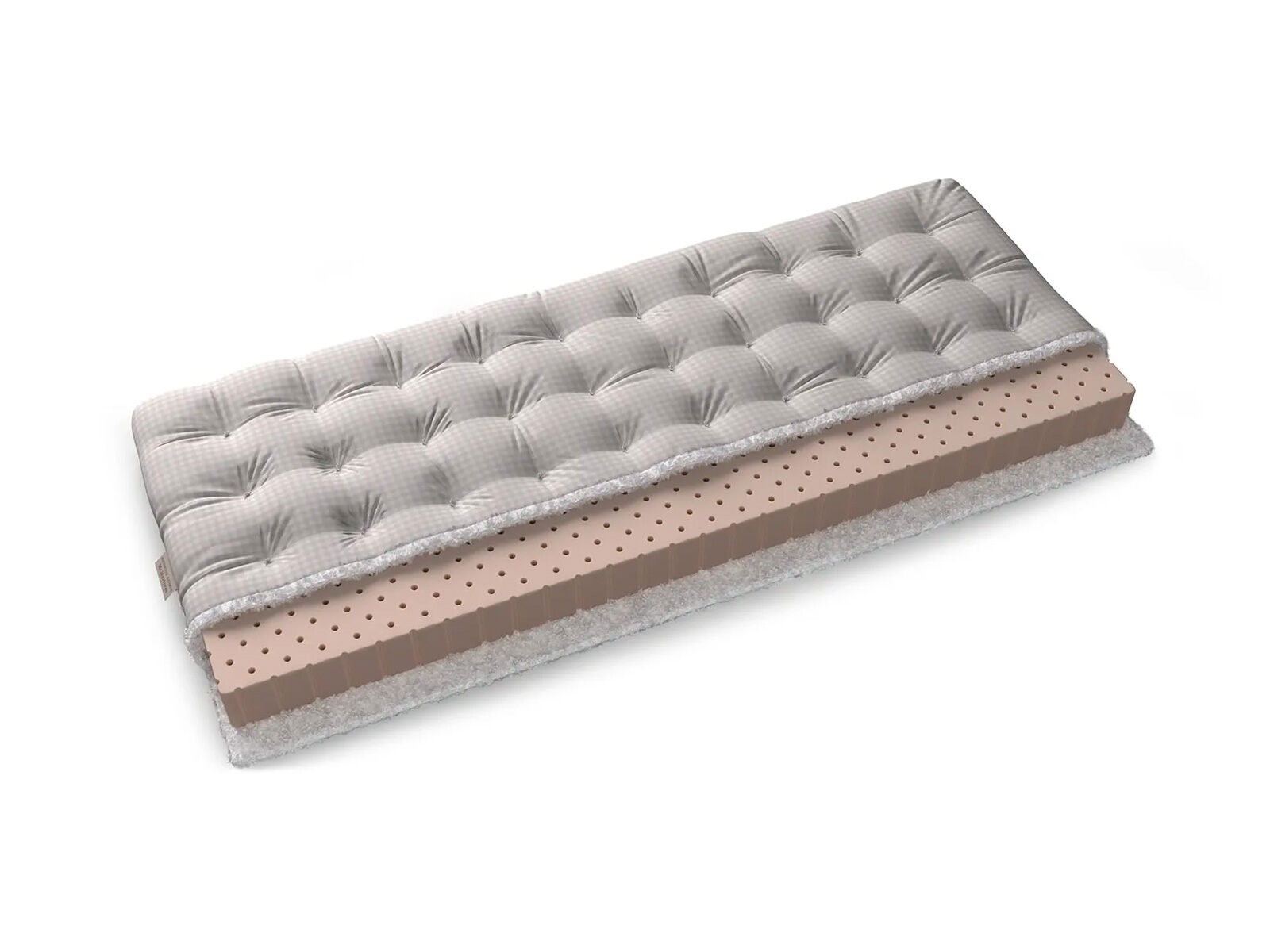 Самый популярный настил. Рулонный латекс отличный и долговечный, хорошо распределяет нагрузку, имеет ортопедический эффект. За счёт упругости латекса давление на сосуды и мышцы во время сна оказывается минимальным. Латекс – уникальный материал с точки зрения индустрии сна. Он прекрасно используется в качестве самостоятельной основы.