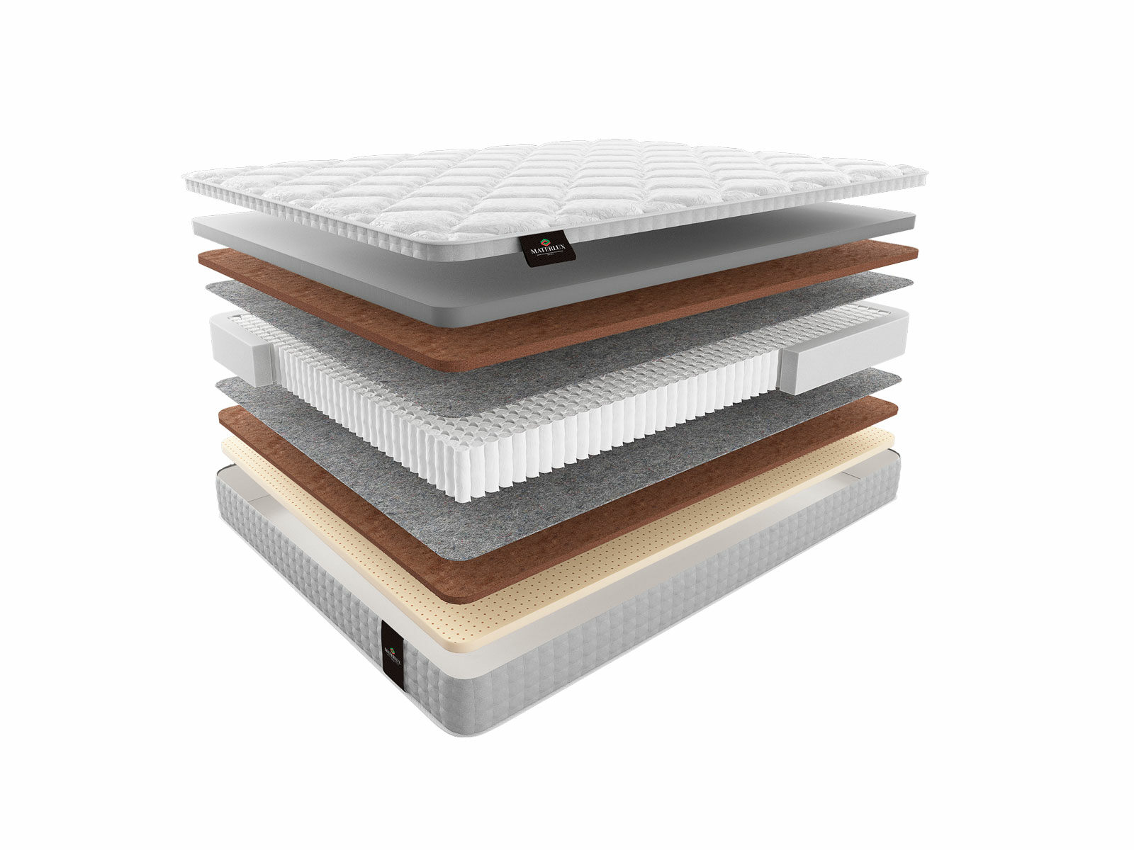 Термофиксированный фетр (500 гр./кв. м; 0,5 см): этот натуральный материал служит в качестве надежной изоляции между пружинами и внешними слоями матраса, обеспечивая дополнительную прочность и комфорт.