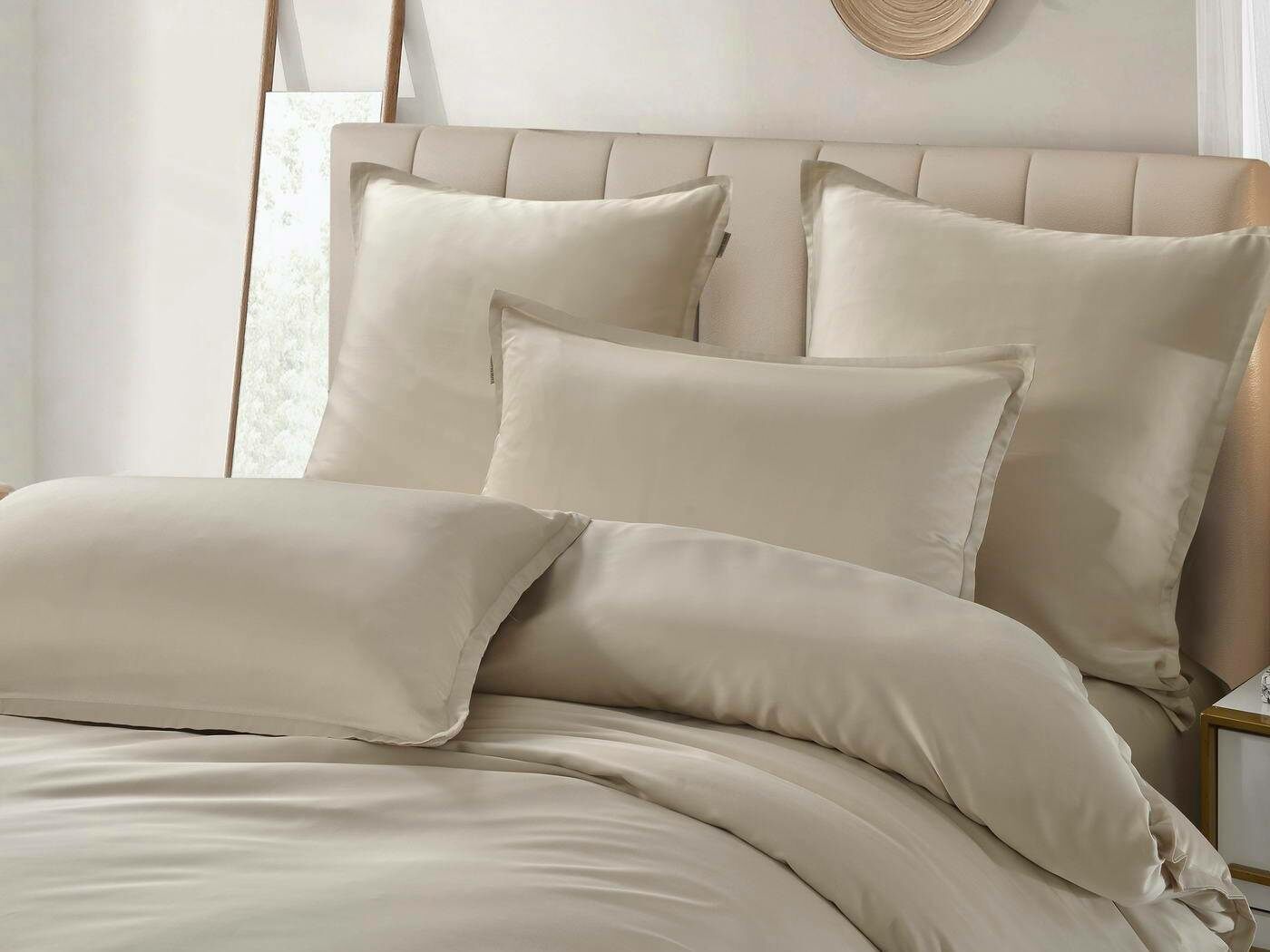 Комплекты постельного белья Ансель: нежность и комфорт каждую ночь Ищете постельное бельё, которое подарит вам незабываемый комфорт и уют? Тогда комплекты постельного белья Ансель из тенселя — идеальный выбор! Тенсель — это натуральная ткань, изготовленная из волокон эвкалипта. Она обладает рядом преимуществ перед хлопковыми тканями: более нежная, шелковистая и приятная на ощупь. Комплекты постельного белья Ансель включают в себя наволочки, простыню и пододеяльник. Они выполнены из 100% тенселя, что гарантирует высокое качество и долговечность. Одно из главных преимуществ тенселя — его способность пропускать воздух и хорошо впитывать и испарять влагу. Это обеспечивает оптимальный микроклимат во время сна, предотвращает появление неприятных запахов и бактерий. Ещё одно важное свойство тенселя — антибактериальный эффект. Это значит, что постельное бельё Ансель не вызывает аллергии и подходит для людей с чувствительной кожей. Уникальное свойство тенселя — климат-контроль. При высокой температуре в помещении ткань обладает лёгким и приятным охлаждающим эффектом, а при низкой создаёт ощущение тепла и комфорта. Комплекты постельного белья Ансель — это идеальный выбор для тех, кто ценит комфорт, качество и натуральность. Они станут отличным дополнением к вашему интерьеру и подарят вам незабываемые ощущения во время сна.