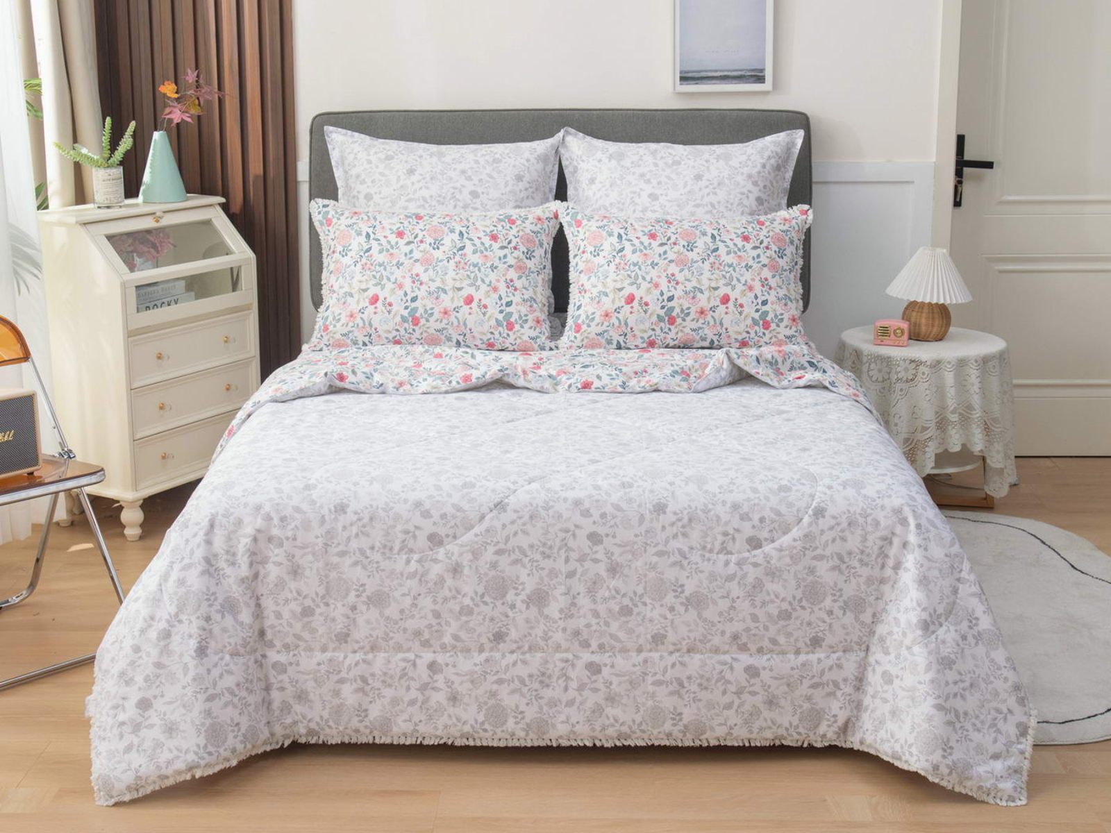 В комплекты комфортеров с одеялом Бернадетт входят наволочки, простыня и легкое всесезонное одеяло. Оцените это современное и очень удобное решение, которое идеально подходит тем, кто не любит возиться с пододеяльниками.