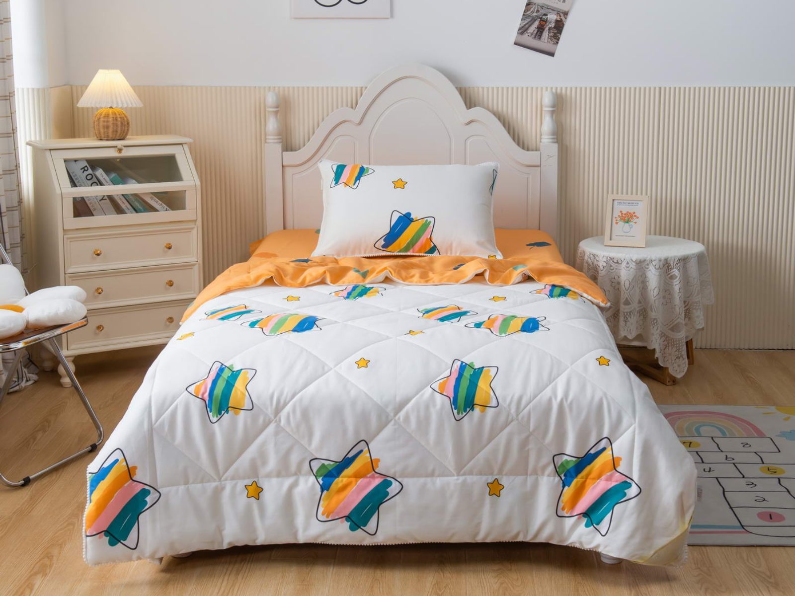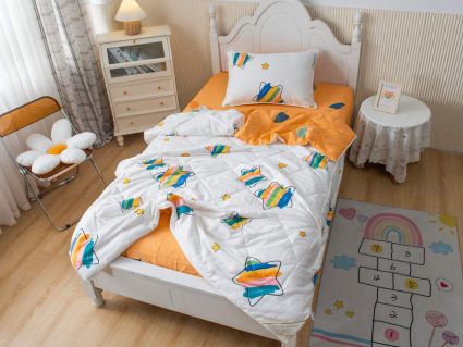 Само одеяло тонкое и легкое, но под ним ребенку не будет холодно зимой или жарко летом. Такое одеяло можно использовать в любое время года, 100% хлопок гарантирует качественный сон, т.к. натуральная ткань хорошо впитывает влагу и позволяет коже дышать. Натуральные материалы не вызывают аллергии. Огромная палитра оттенков и яркие дизайны комплектов понравятся детям и подросткам.