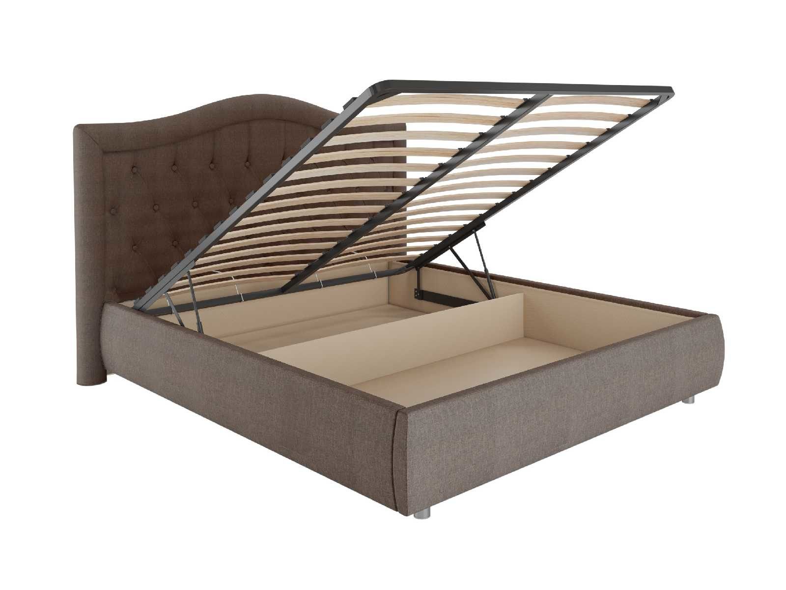 Модель комплектуется основанием с подъёмным механизмом и коробом для хранения белья. Такое решение позволит удобно складывать постельные комплекты и сезонные вещи.