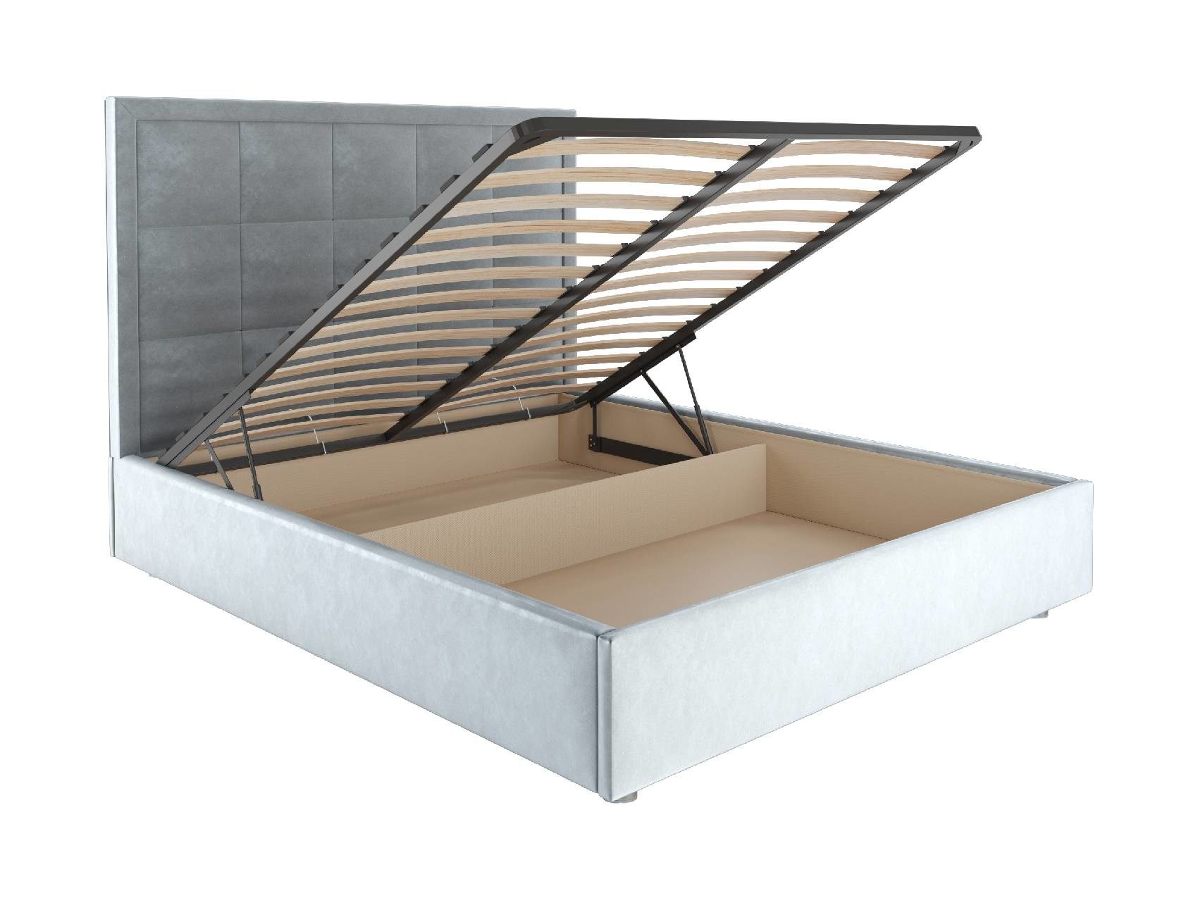 В комплектации с подъемным механизмом кровать имеет вместительный бельевой короб с двумя отделениями.