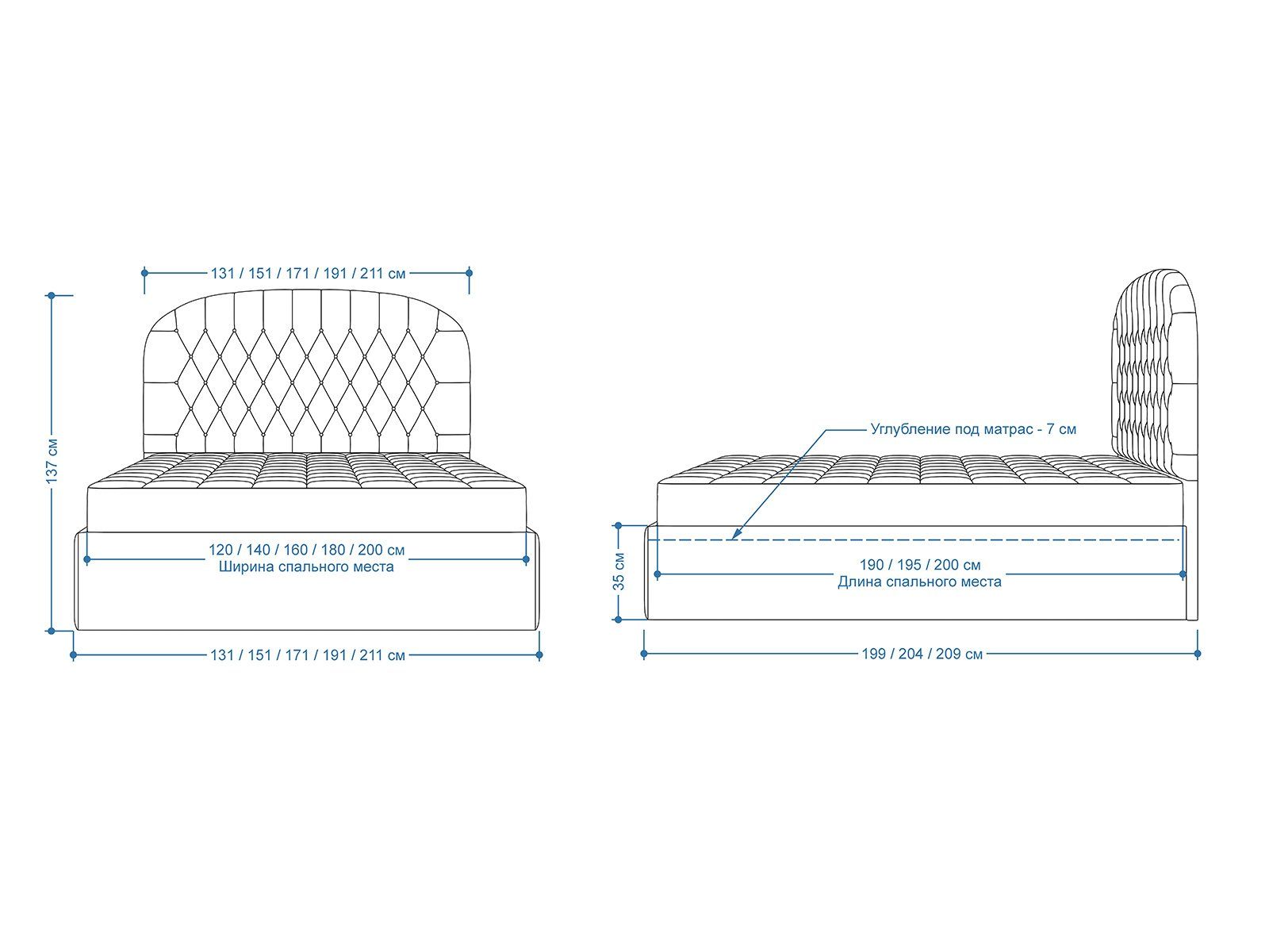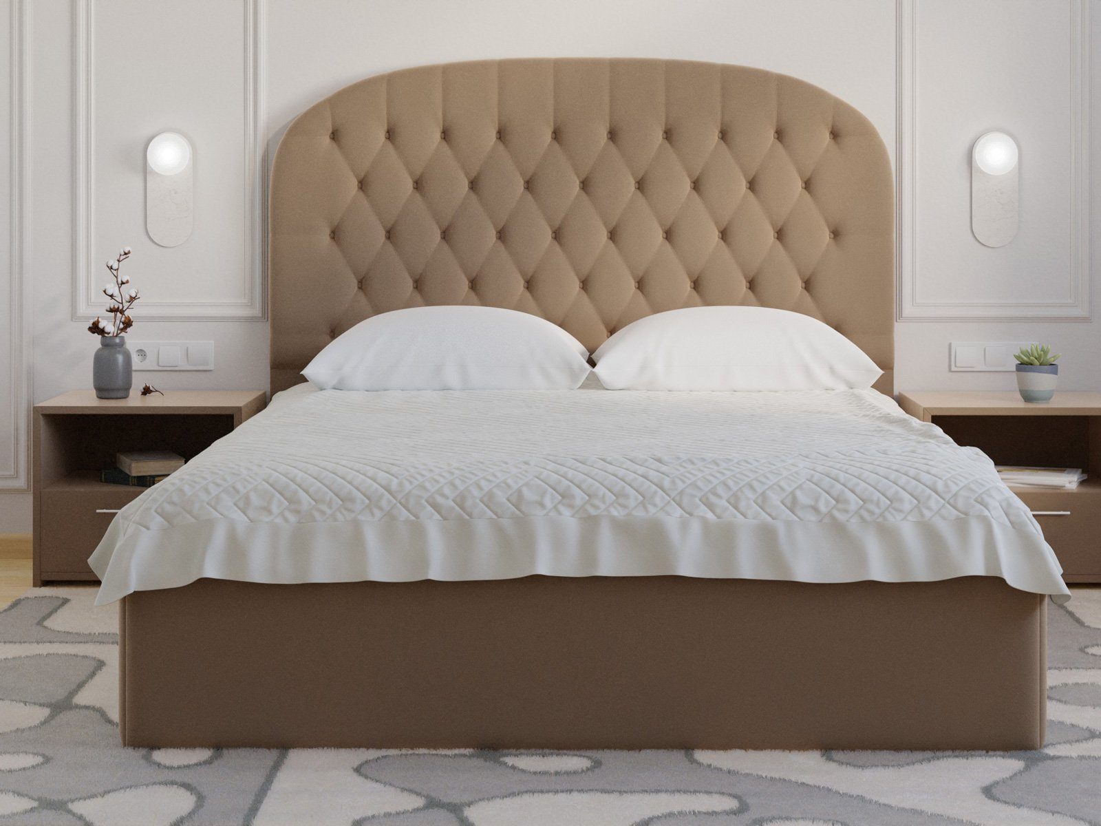Мягкая кровать с обивкой из велюра.