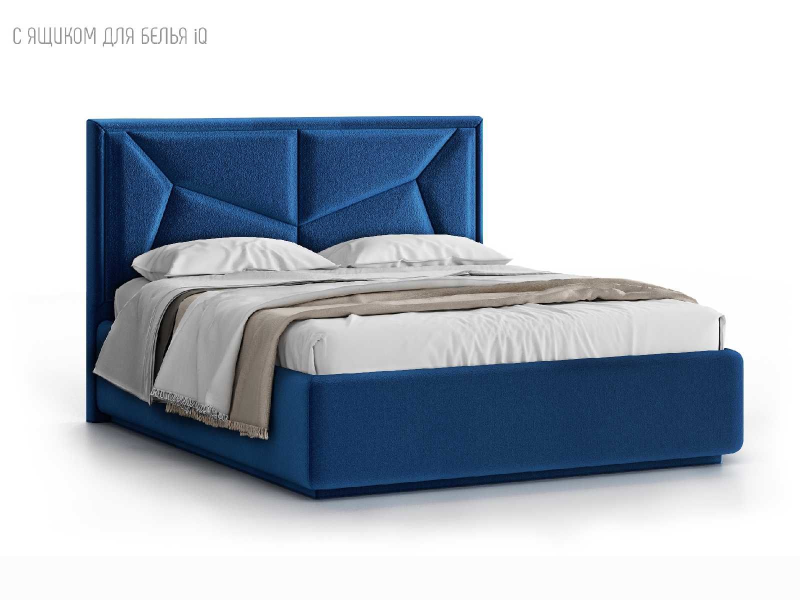 Кровать укомплектована IQ с подъемным механизмом и ящиком для белья без дна (дополнительная платная опция - дно к ящику IQ из HDF (ХДФ). Каркас кровати на цоколе, декоративный чехол на цоколе съёмный. Глубина ящика для белья - 30 см, без ограничения нагрузки на ящик.
