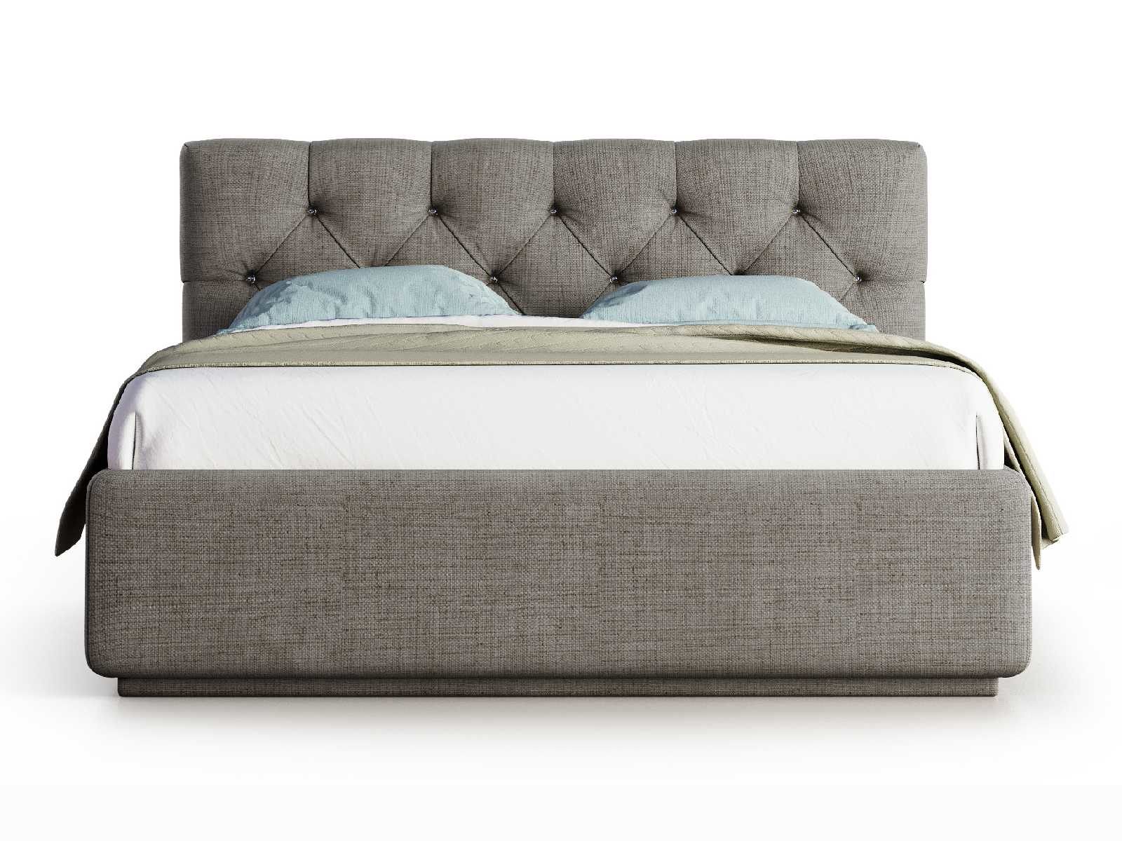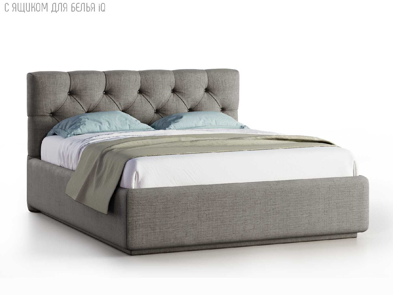 Кровать укомплектована IQ с подъемным механизмом и ящиком для белья без дна (дополнительная платная опция - дно к ящику IQ из HDF (ХДФ). Каркас кровати на цоколе, декоративный чехол на цоколе съёмный. Глубина ящика для белья - 30 см, без ограничения нагрузки на ящик.