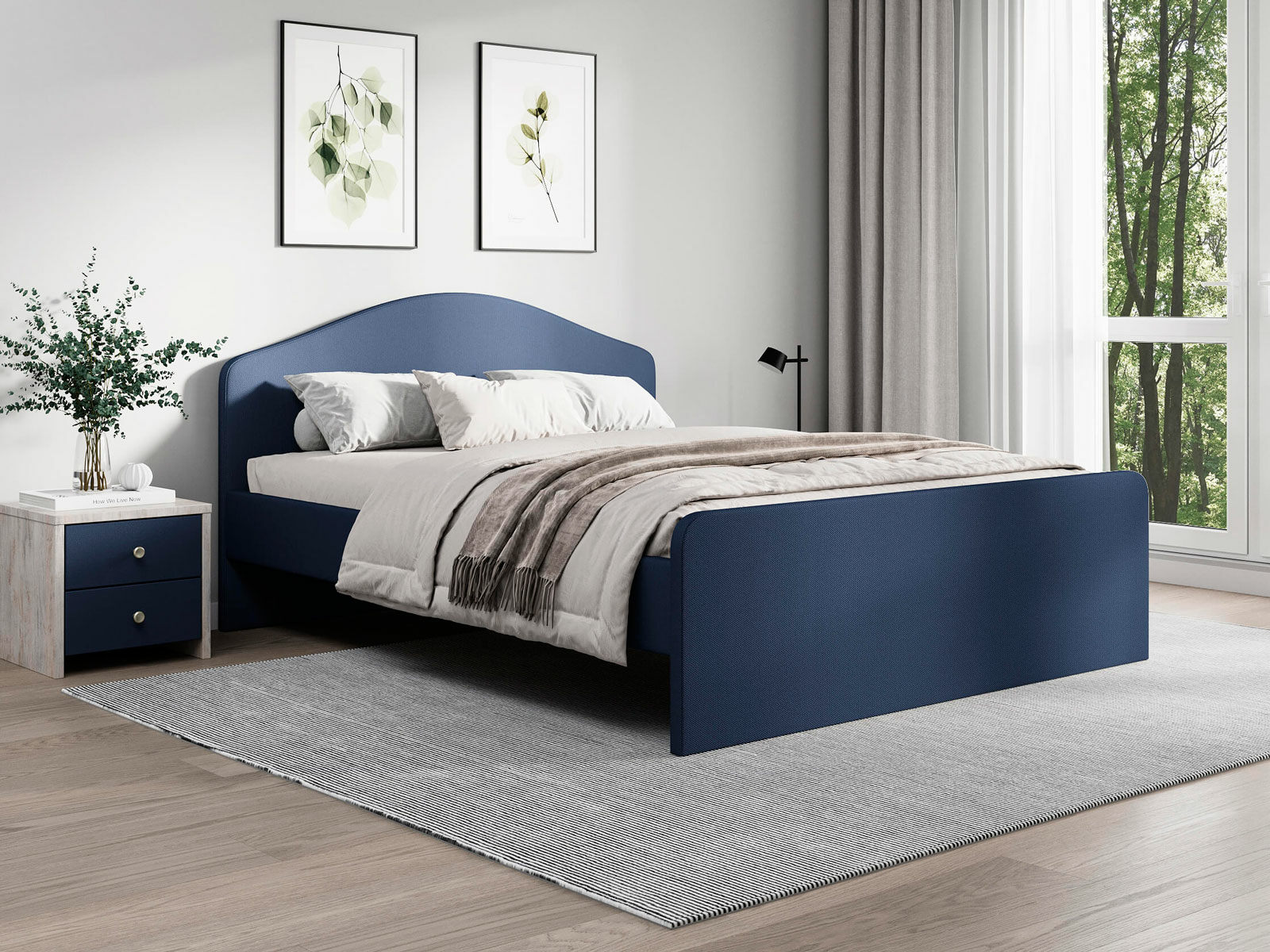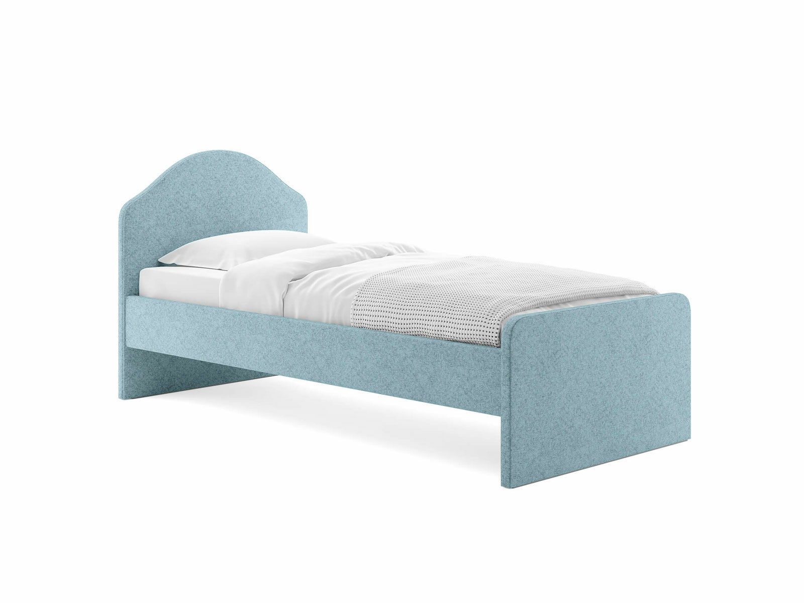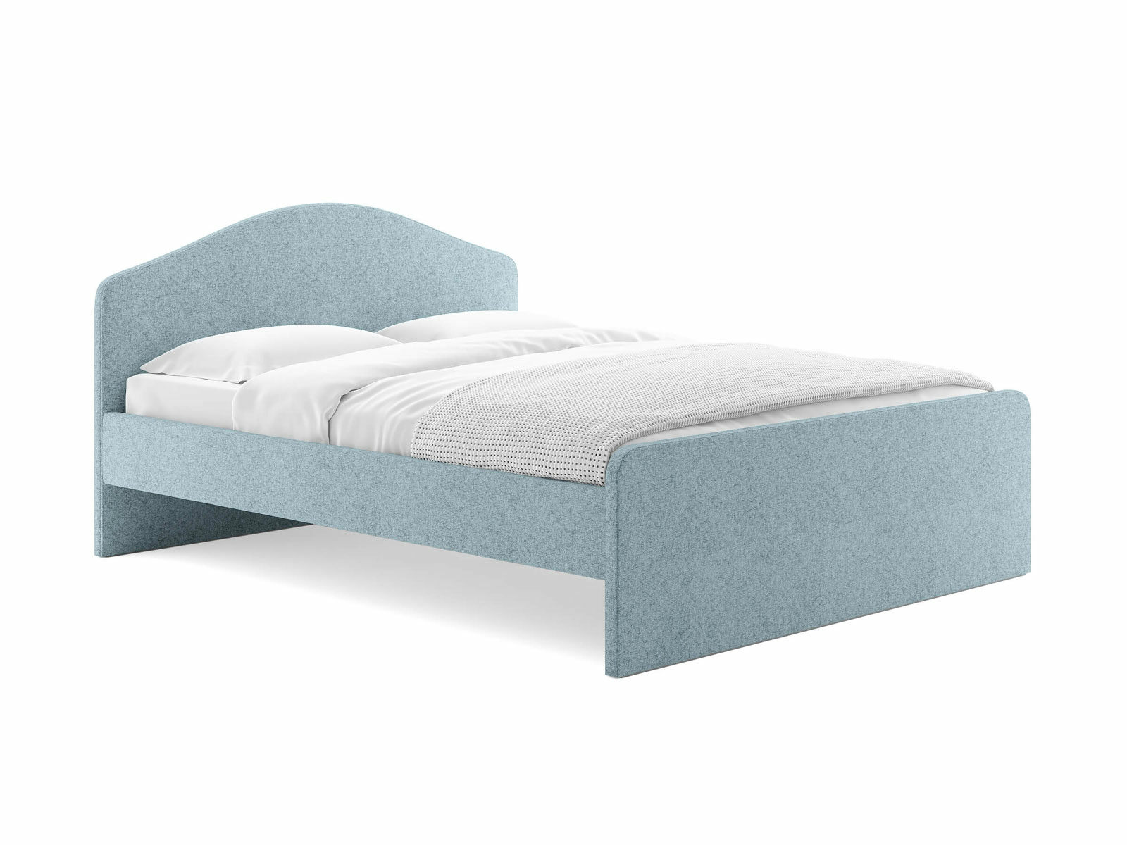 Мягкое изголовье с изгибом, плавные линии изножья, узкие царги делают кровать запоминающейся и уютной. Увеличенное расстояние до царг способствует легкой уборке под кроватью роботом – пылесосом, а также позволяет дополнительно приобрести выкатную тумбу или ящики для хранения вещей.