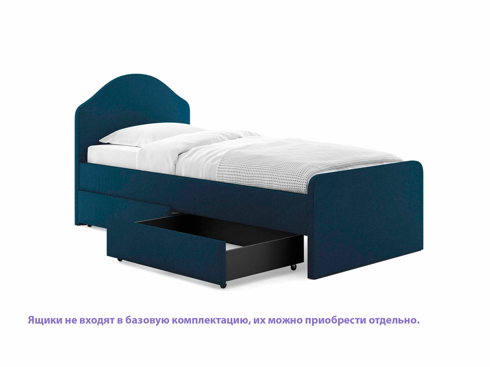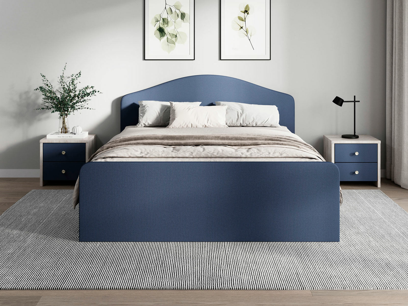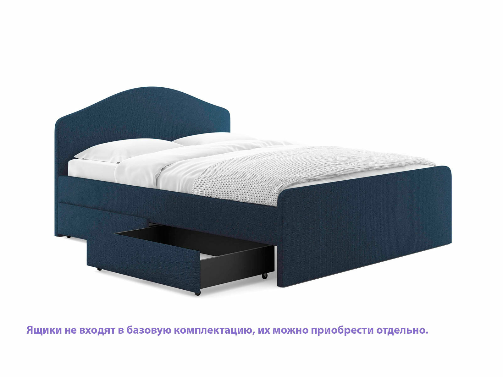 Мягкое изголовье с изгибом, плавные линии изножья, узкие царги делают кровать запоминающейся и уютной. Увеличенное расстояние до царг способствует легкой уборке под кроватью роботом – пылесосом, а также позволяет дополнительно приобрести выкатную тумбу или ящики для хранения вещей.