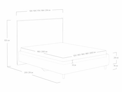 Кровать Eveline для современных интерьеров в скандинавском стиле. Выглядит эффектно благодаря мягкому высокому изголовью с декоративным кантом по периметру и опорам из натурального дерева. Модель будет смотреться выигрышно и актуально в интерьере, делая спальню уютнее, настраивая на отдых.