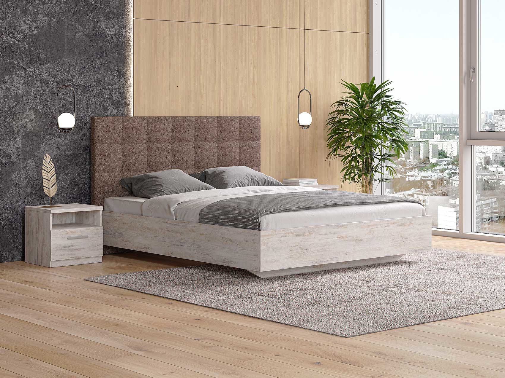 ЛДСП. Безопасный и экологичный ЛДСП стандарта Е1 содержания формальдегида. Увеличенная толщина плиты 25 мм делает кровать надежной. Современный и актуальный цвет.