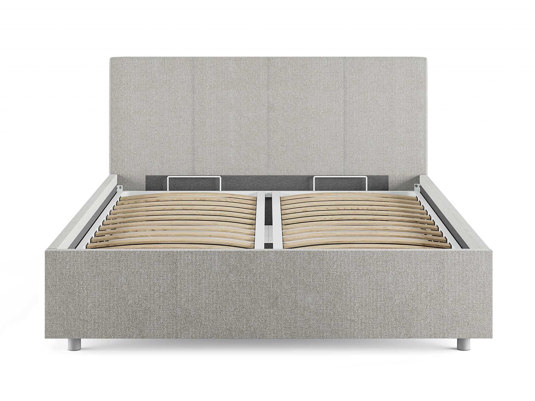 Кровать комплектуется металлическим основанием и подъемным механизмом со вместительным бельевым ящиком. Дно бельевого ящика легко сдвигается для обеспечения уборки под кроватью.