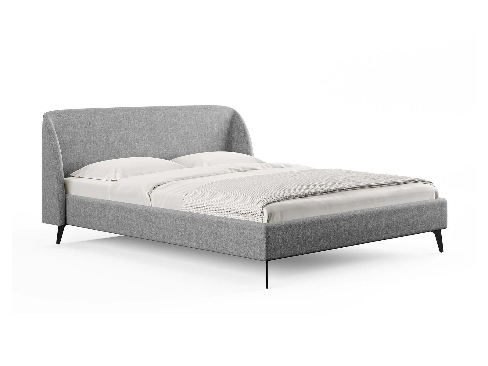 Кровать с закругленным изголовьем делает спальное место особенно уютным. Ее дизайн удачно подойдет для интерьеров в современном стиле, стиле минимализм и стиле mid-century модерн. Спинка кровати выполнена в основной ткани, благодаря этому ее можно установить в центре комнаты. Узкие царги и стильные металлические ножки делают кровать легкой и лаконичной. Кант на изголовье выступает в качестве декора, подчеркивает ее выразительность. Увеличенная прочность кровати достигается за счет металлического каркаса по периметру. Расстояние от пола до царг способствует легкой уборке под кроватью, в том числе роботом – пылесосом.