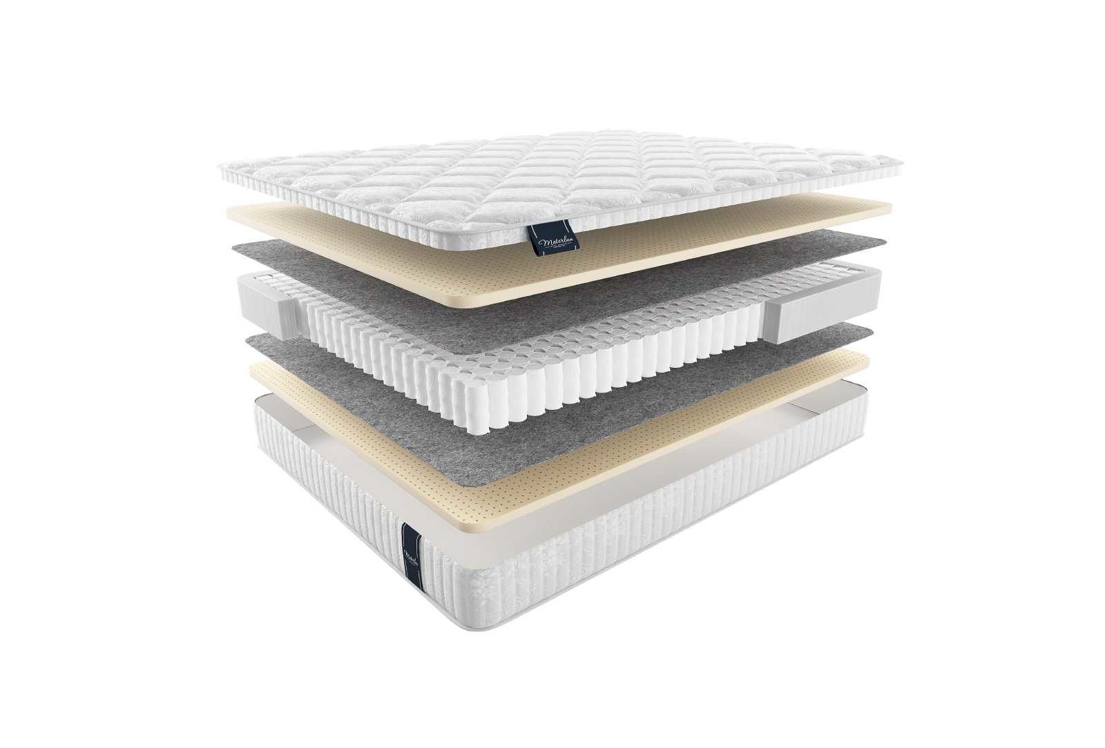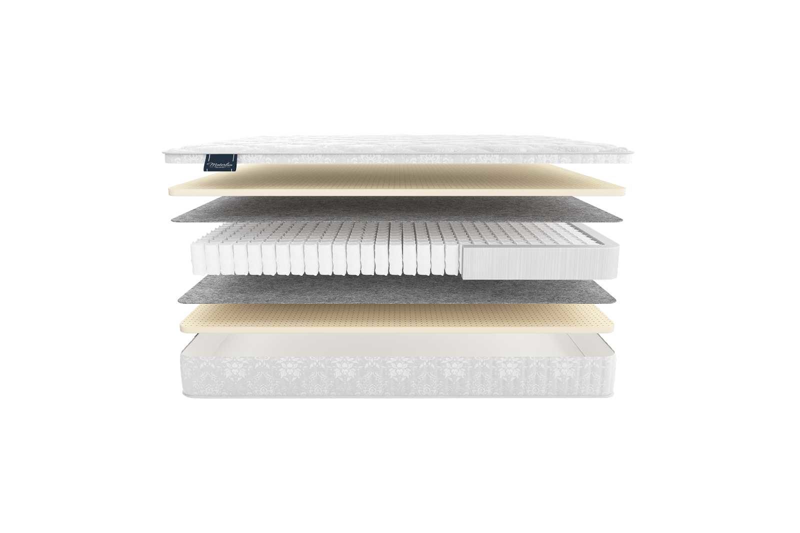В качестве наполнения матраса используется специальный семизональный латекс. Этот материал даёт прогрессивную поддержку с массажным эффектом. Латексная плита обладает различной плотностью в том или ином месте, которая соотносится с частями тела. Более выраженная упругость будет приходиться на бедра и плечи, поскольку они дают самую большую нагрузку. Менее интенсивная плотность соответственно ложится в район конечностей и головного отдела. Такое перераспределение даёт выраженную гармоничную поддержку, которая приносит особый комфорт.