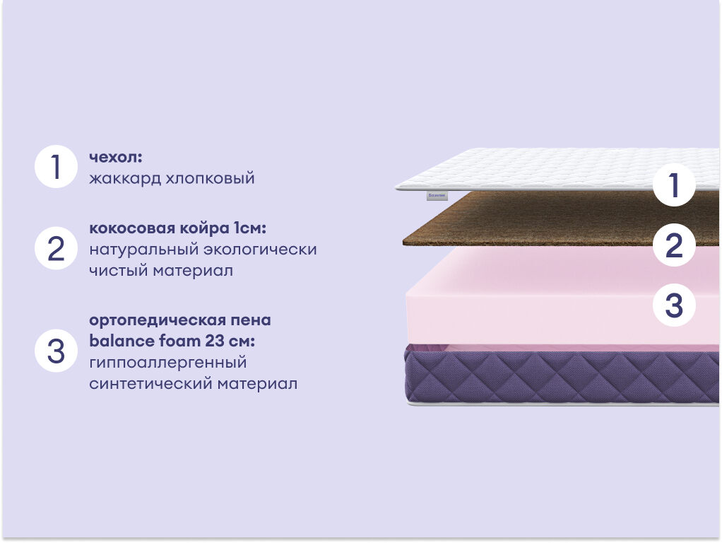 Матрас Базилик Фреш 25 Кокос — это идеальное сочетание комфорта и поддерживающих свойств, подходящее для любого спального места. С двумя уровнями жёсткости и гипоаллергенными материалами он обеспечивает здоровый и уютный отдых. С этим матрасом ваш сон станет комфортным и здоровым, как если бы вы отдыхали на юге Франции.
