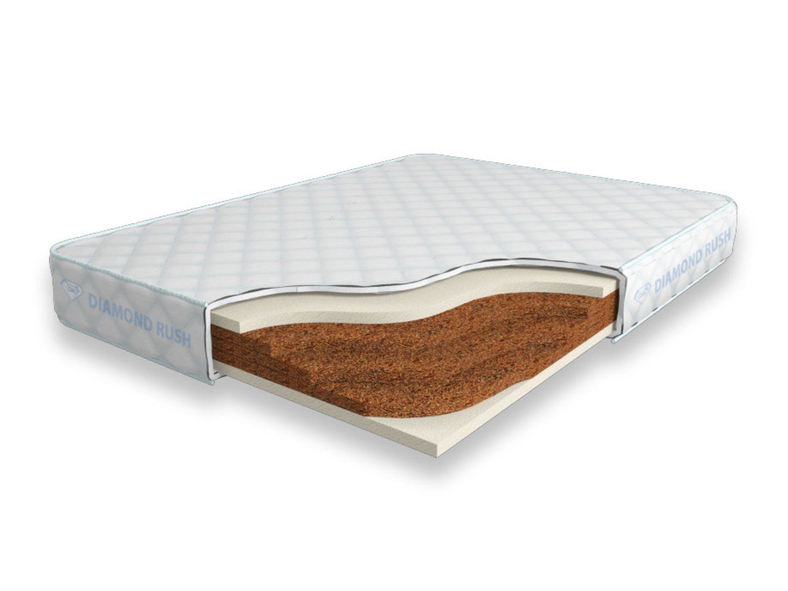 Матрас Diamond Rush Cocos Lite 15 SD является беспружинным, т.е. не имеет в своей основе пружинного блока. В основе модели идут кокосовые плиты, их количество зависит от требуемой высоты матраса. Сверху и снизу для большего комфорта и придания средней жесткости прокладываются листы по 3см искусственного латекса. Эта модель имеет идентичные по жесткости стороны.
