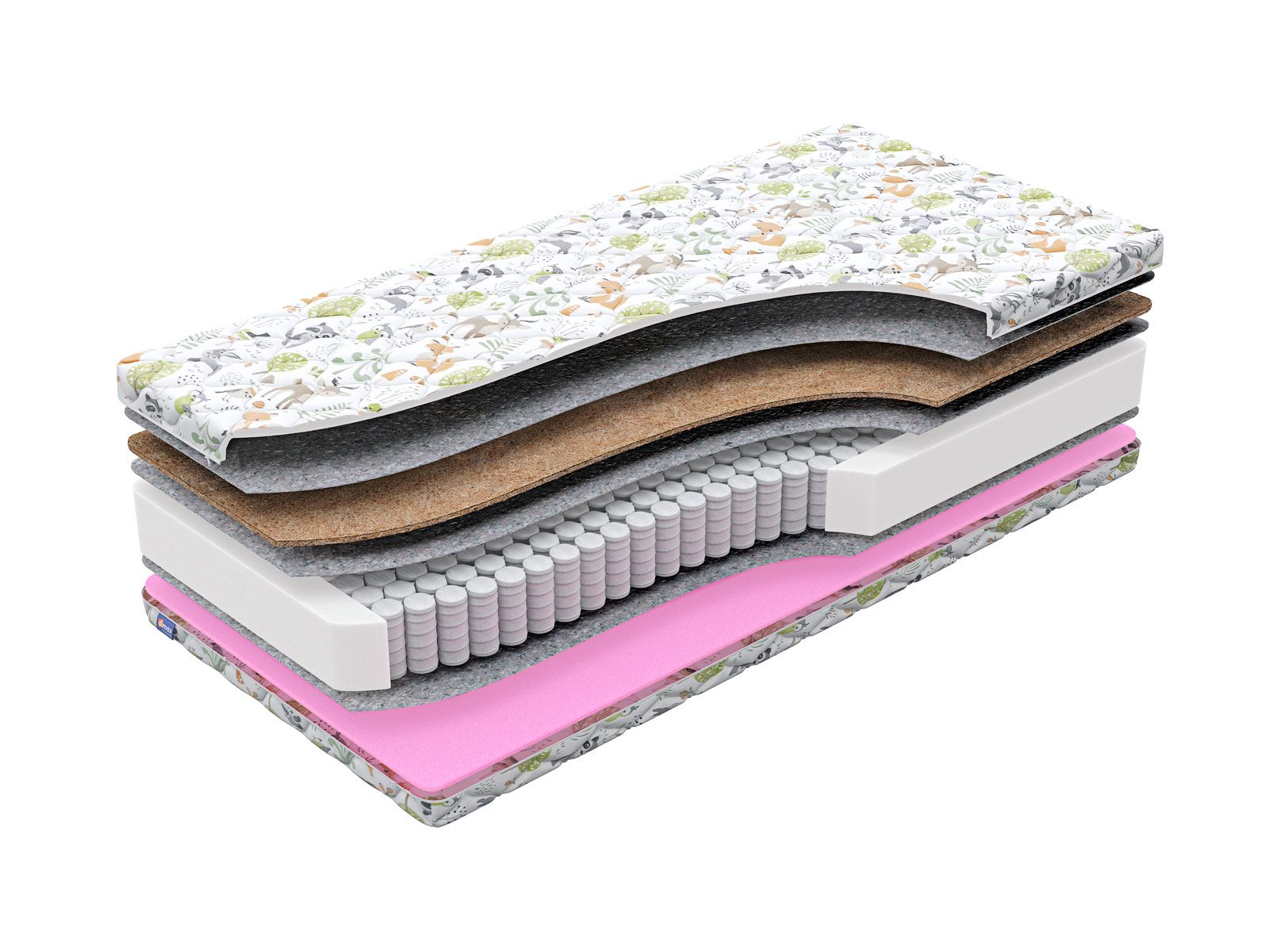 Матрас обеспечивает точечную поддержку позвоночника и позволяет ребенку спать так, как ему удобнее, а родителям – легко ухаживать за матрасом благодаря съёмному чехлу.