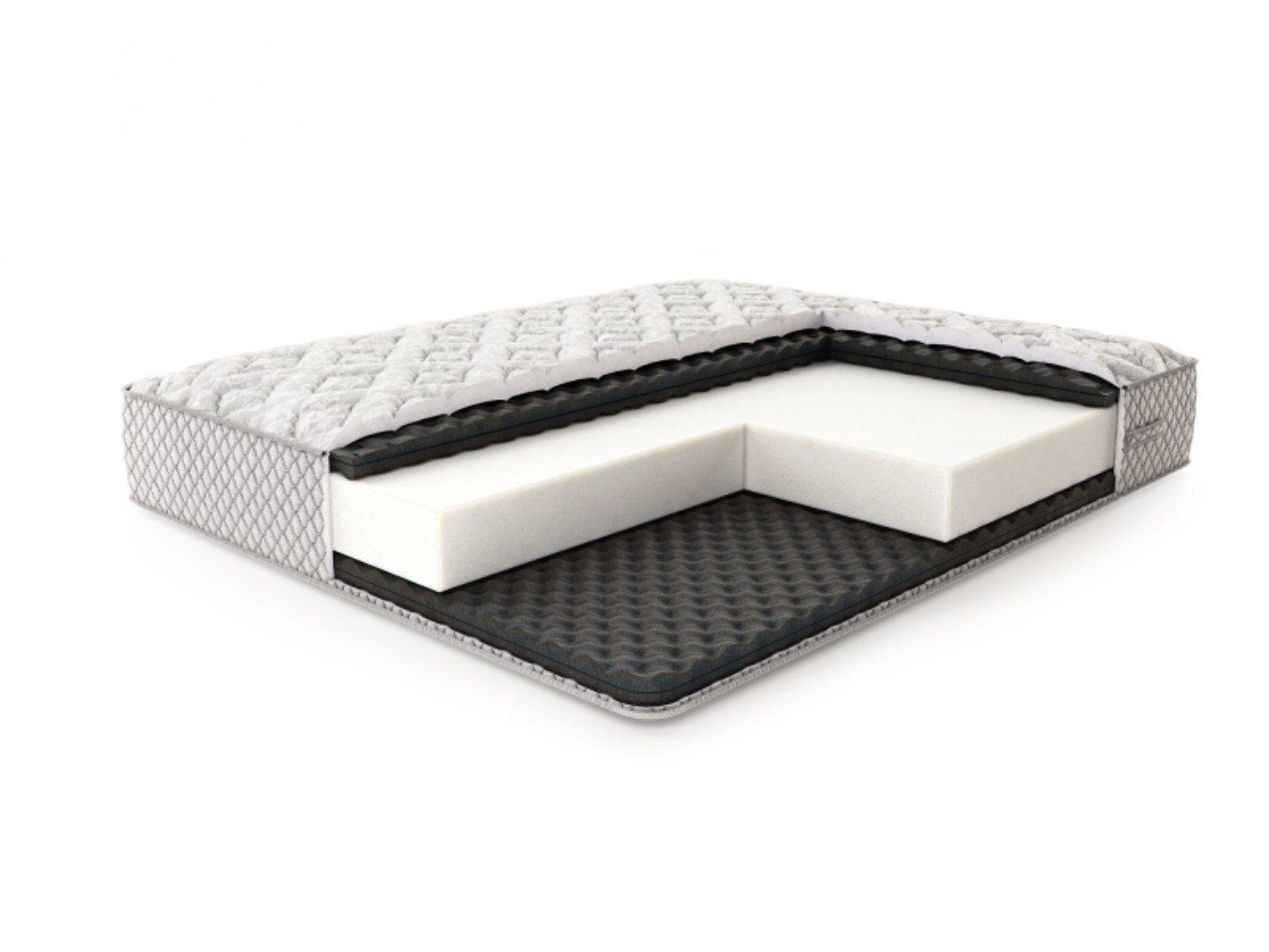 Для обивки матраса реализован трикотаж, который дополнительно простёгивается на объёмном волокне холлкона 300 гр., ППУ 1 см и спанбонде. Бурлет модели сшит из мебельного жаккарда на ППУ.