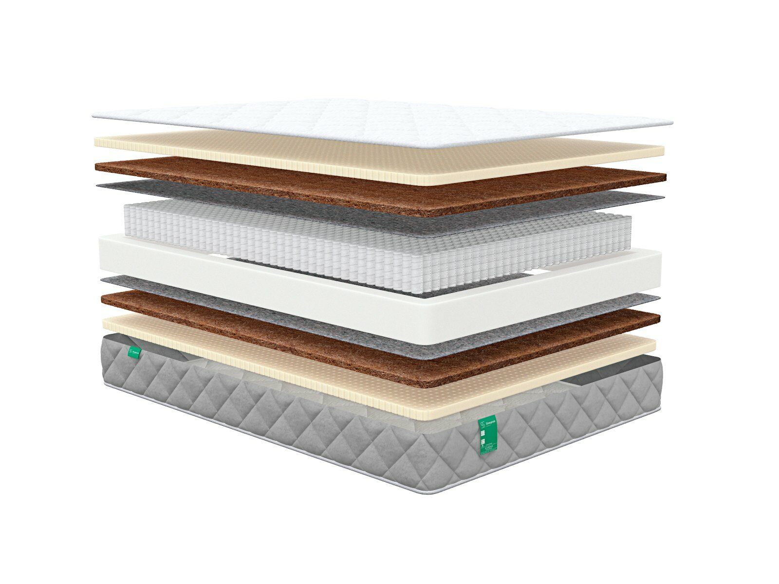 • Кокосовую койру получают из волокон кокосового ореха, поэтому этот материал не только отлично пропускает воздух, но и отличается яркими ортопедическими характеристиками. Койра обеспечивает спине естественную и правильную поддержку на протяжении всей ночи.