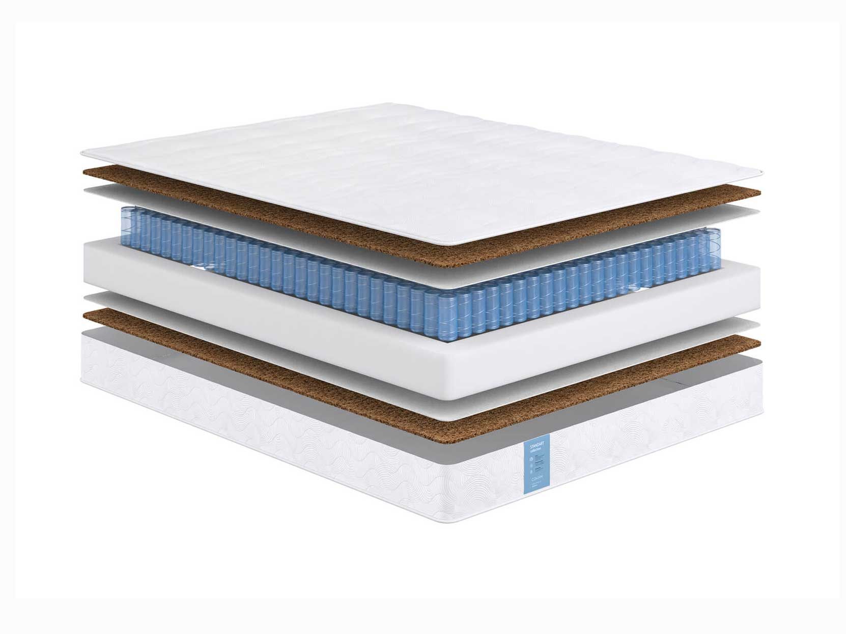 Матрас Standart Hard на основе блока независимых пружин Pocket, плотностью 512 пружин на спальное место, снимает нагрузку с позвоночника и качественно поддерживает область поясницы. Кокосовая койра обеспечивает оптимальную жесткость.