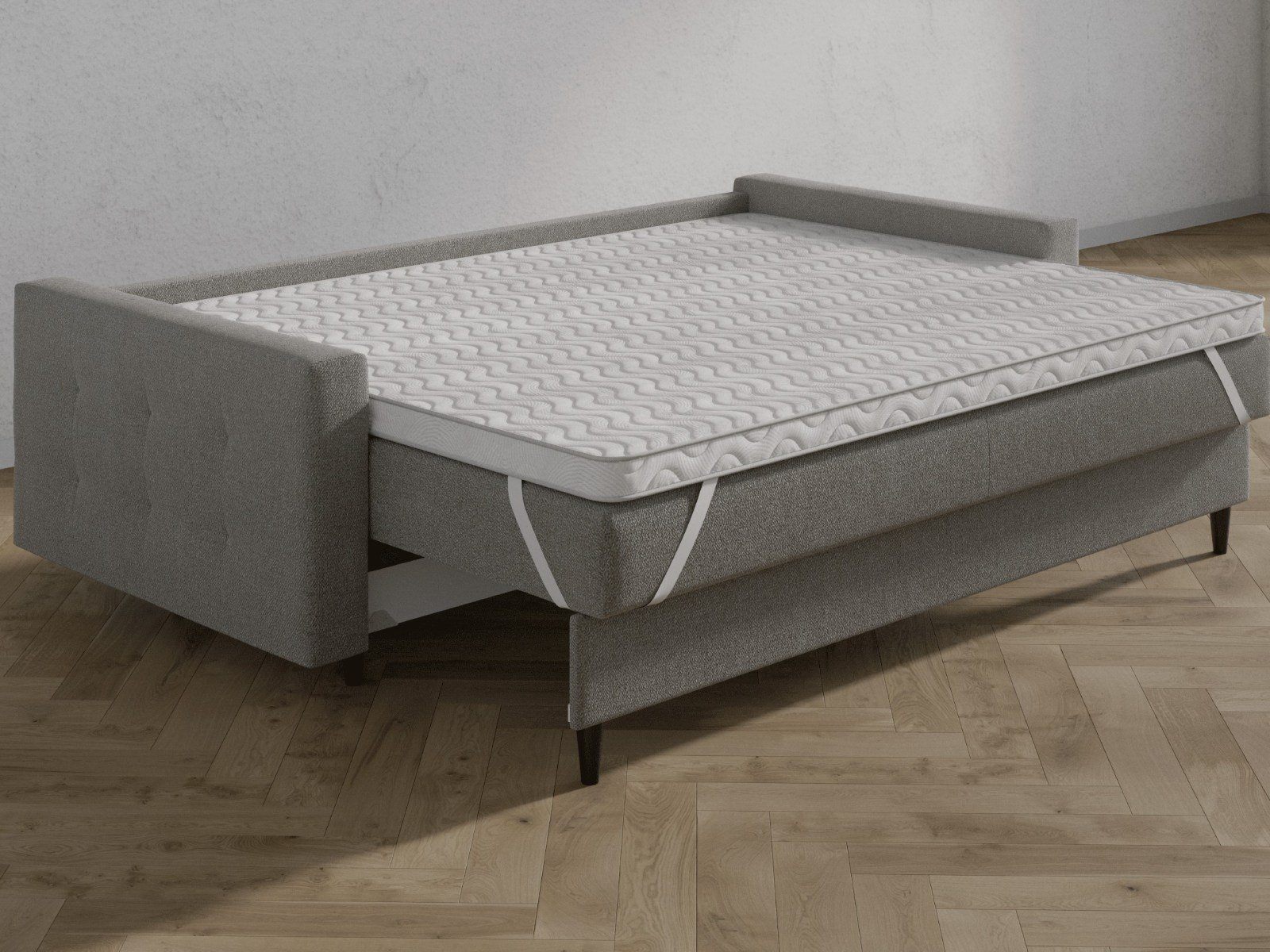 Топпер изготовлен из двух слоев: инновационной пены со свойствами латекса и пены высокой плотности. Данная модель средней жёсткости помогает расслабить напряжённые мышцы, скрывает стыки и неровности. Оптимально подобранные слои из современных пен разной плотности, жесткости, с разными свойствами, для здорового и комфортного сна.Крепление осуществляется с помощью резинок по четырём углам.