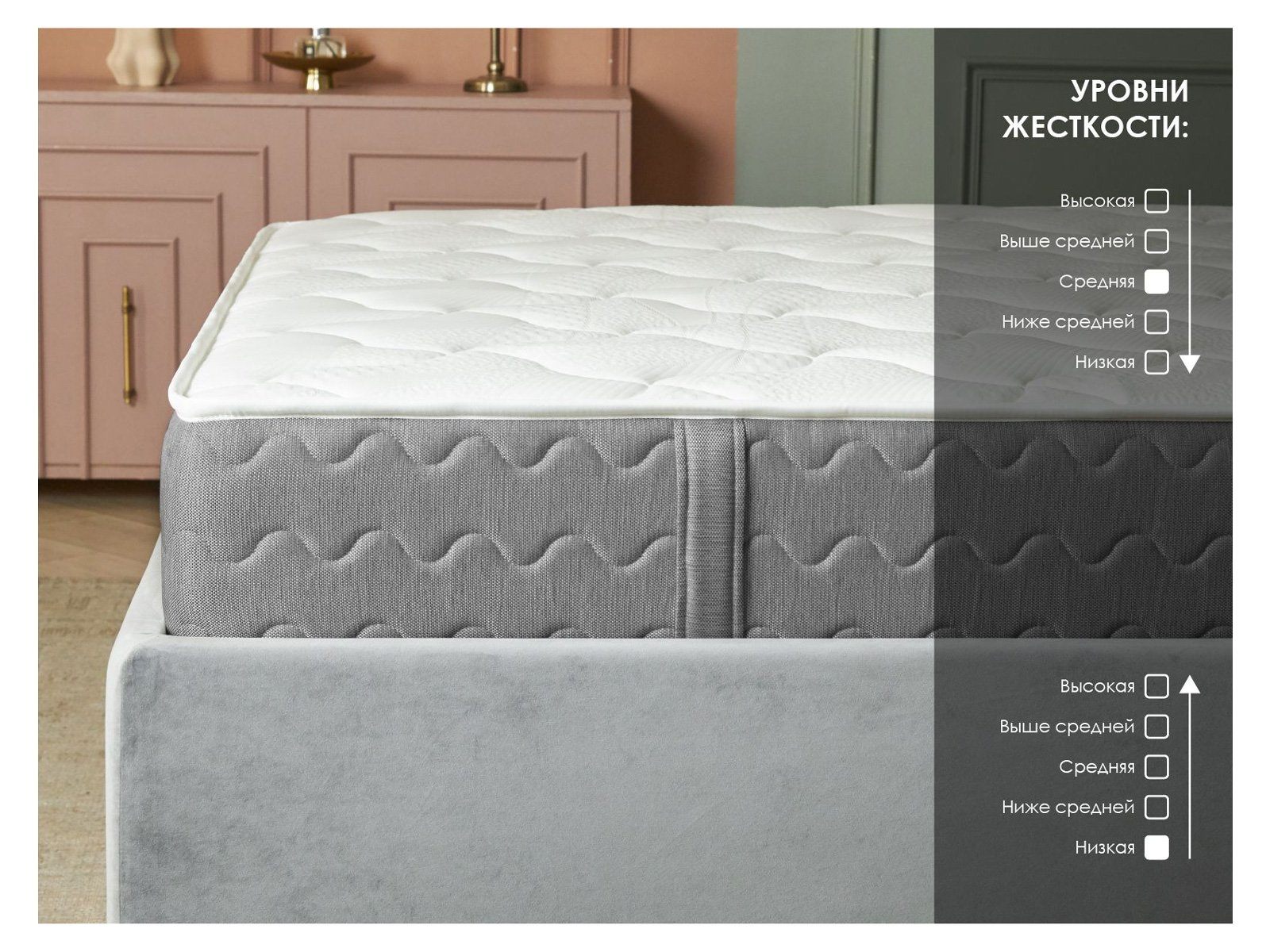 Матрас сочетает природный комфорт от кокоса и латекса на одной стороне с нежной пеной Мемори на другой, а 5-зональный блок гарантирует точечную ортопедическую поддержку.
