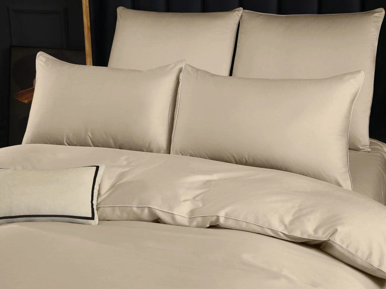 Пододеяльник украшен декоративным кантом по периметру и имеет удобную молнию по всей ширине, что значительно упрощает процесс его замены. Изысканный цвет экрю - натуральный и мягкий оттенок серо-бежевого, который относится к базовым цветам в оформлении интерьера и послужит основой для любых контрастных решений.