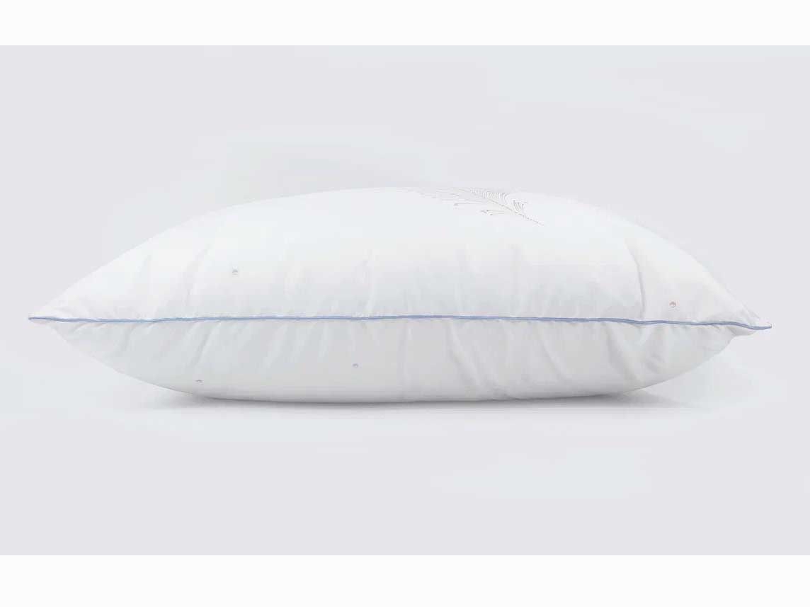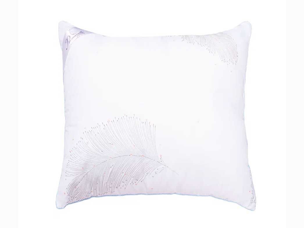 Чехол подушки выполнен из ткани Brushed-твилл. Ткань разработана специально для стран северной Европы и Канады. Она мягкая и бархатистая, обладает повышенной плотностью, хорошо пропускает воздух, не деформируется и быстро сохнет. Благодаря биоцидной обработке против грибков и клещей изделие является безопасным и подарит Вам незабываемый комфорт во время сна. Украшает подушку эксклюзивный принт "перышко" и отделка голубым кантом по периметру. Рисунок имеет отделку мерцающим пигментом, за счет чего изделие выглядит оригинально и красиво и может послужить прекрасным подарком.