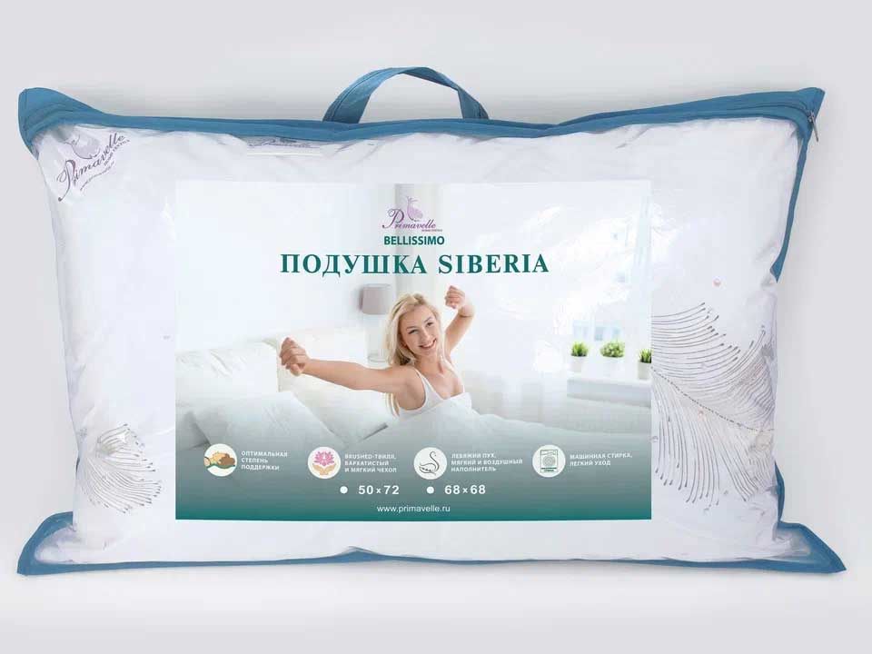 Мягкая и легкая подушка Siberia подходит для людей предпочитающих спать на животе. В качестве наполнителя выступает искусственный лебяжий пух. Мягкий и легкий наполнитель мгновенно восстанавливает форму, не впитывает пыль и запахи, абсолютно гипоаллергенен и подходит для людей с чувствительной кожей.