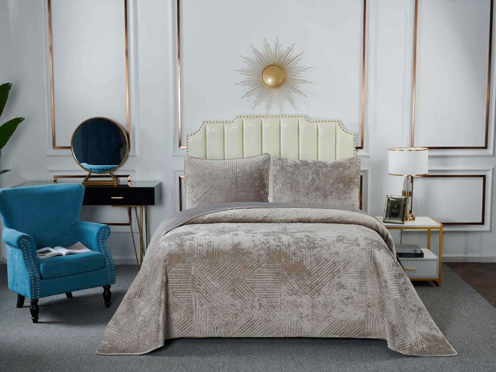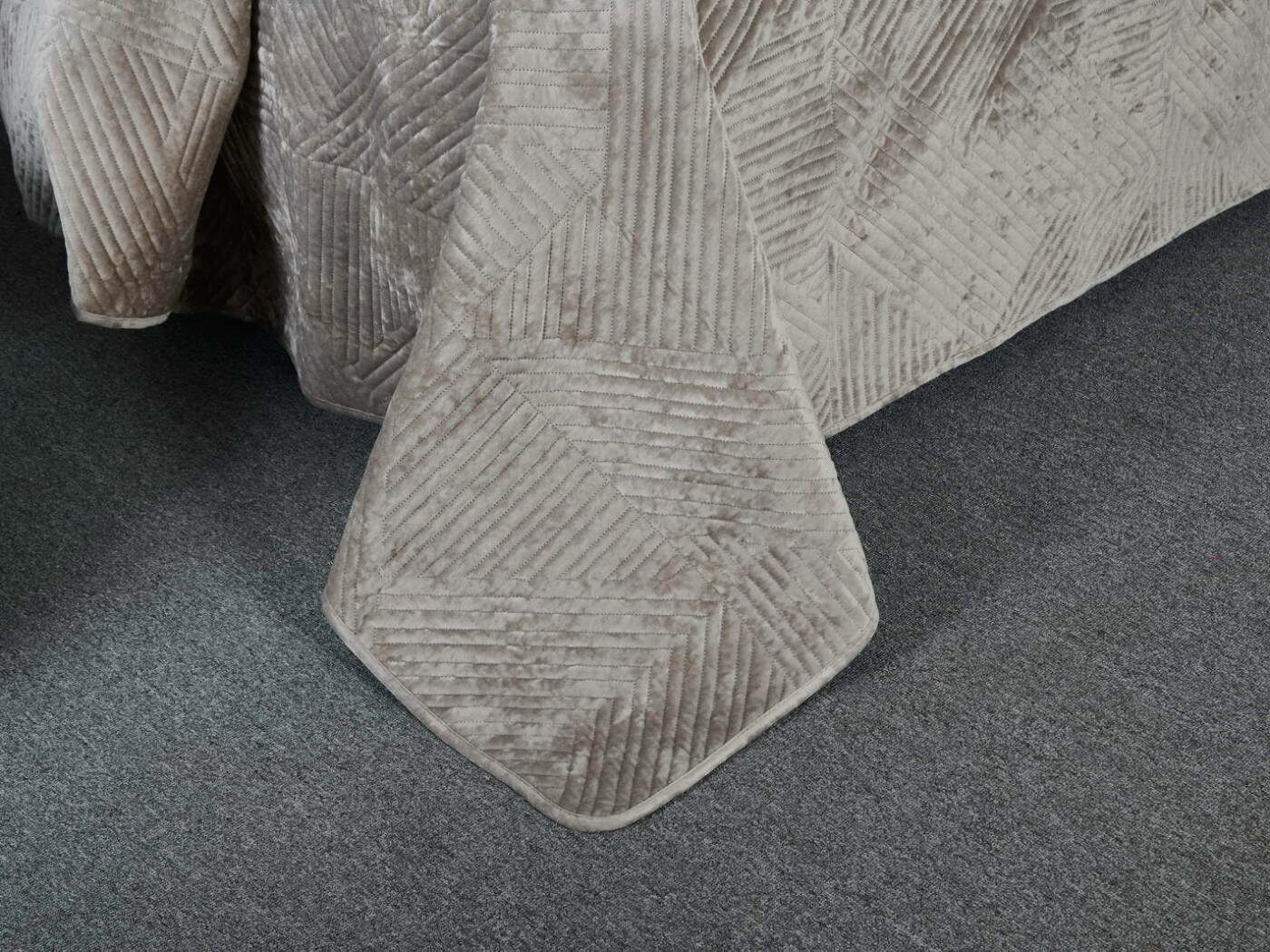 Покрывало украшает лаконичный геометрический орнамент. Геометрия всегда была и остаётся актуальной классикой. Конфигурация различных фигур, углов и линий позволяет им органично вписаться в самые разнообразные интерьерные стили.