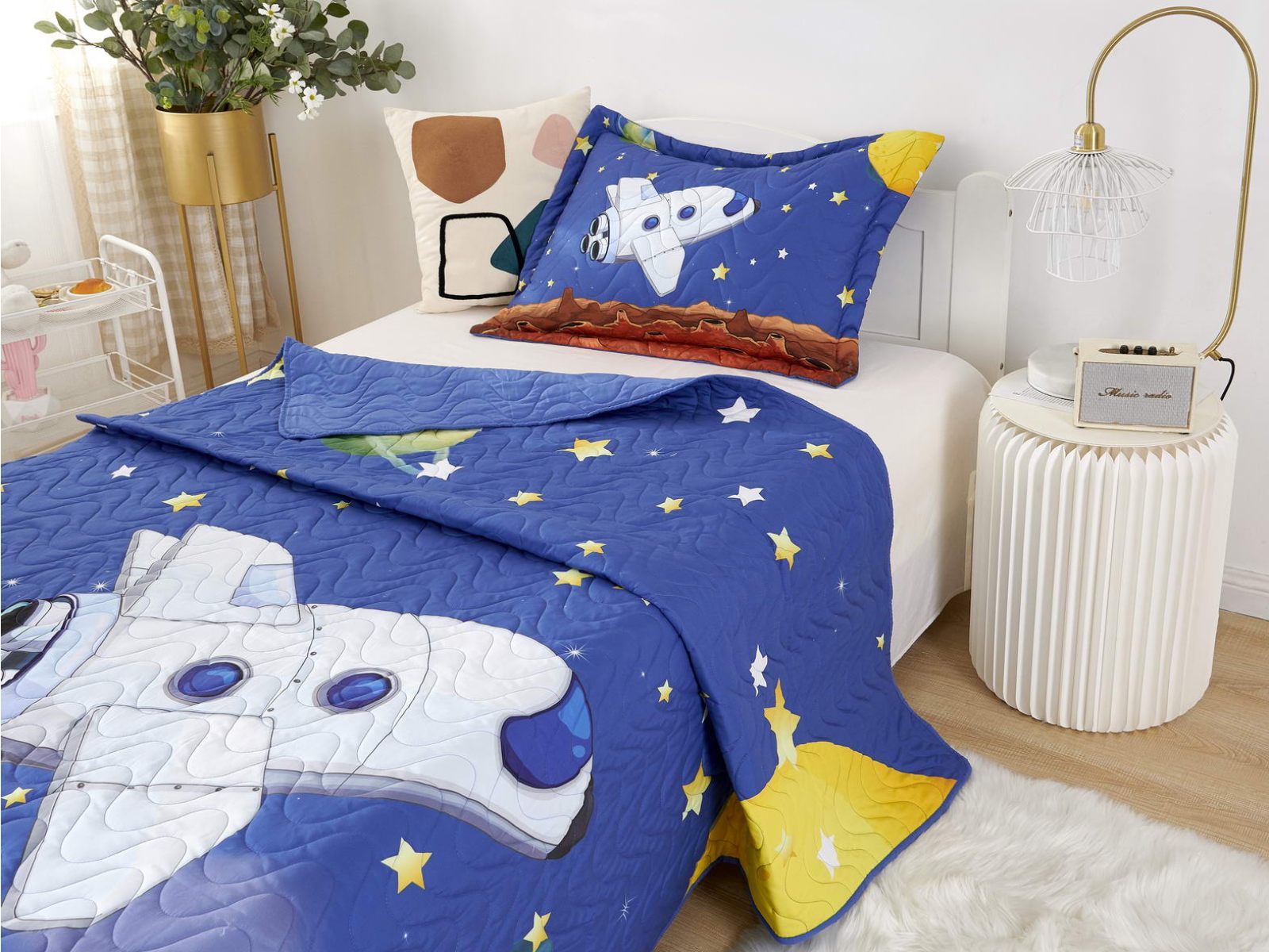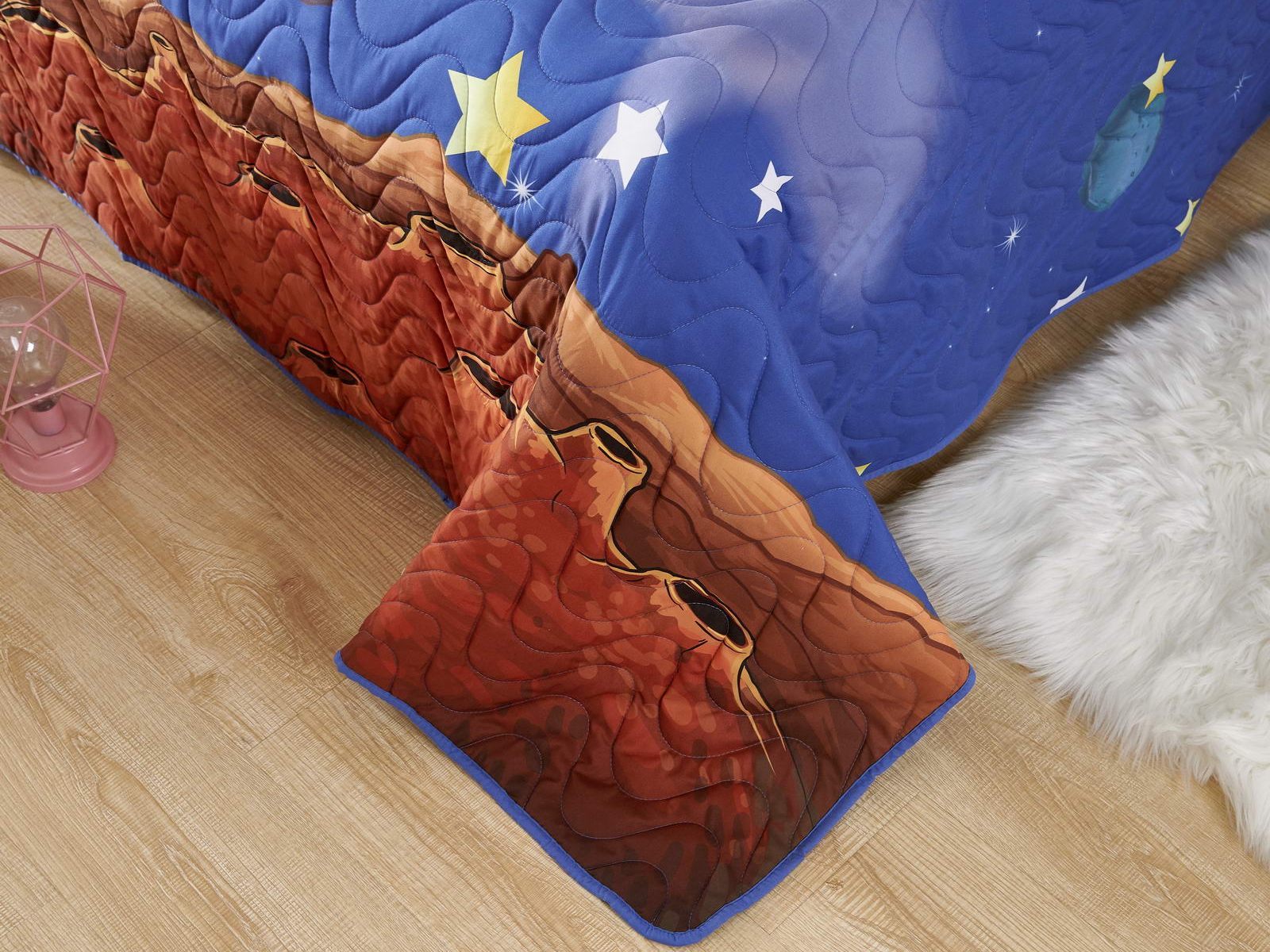 Покрывала коллекции «Sunny day» не только украшают комнату, но и защищают постель от грязи и пыли. А если маленькому хозяину станет холодно, теплое покрывало согреет его. Покрывала сделаны из хлопка и вискозы, хлопок хорошо согревает, а вискоза помогает изделию держать форму.