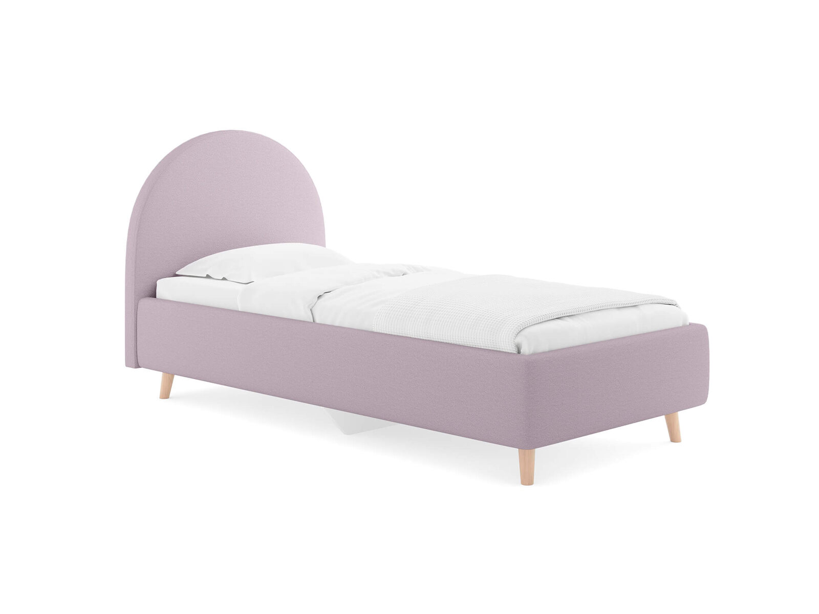 Подростковая кровать с закругленным изголовьем — это идеальное решение для создания уютного и стильного пространства в комнате. Элегантные линии изголовья не только придают изделию изысканный вид, но и добавят мягкость в интерьер, создавая уютную обстановку. По умолчанию задняя спинка кровати обивается тканью, что позволит расположить кровать не только к стене. Основание кровати на высоких деревянных ножках. Благодаря увеличенной высоте позволяют осуществлять легкую уборку под кроватью, даже с помощью робота-пылесоса. При необходимости кровать может быть укомплектована трансформируемым основанием Aquarius.