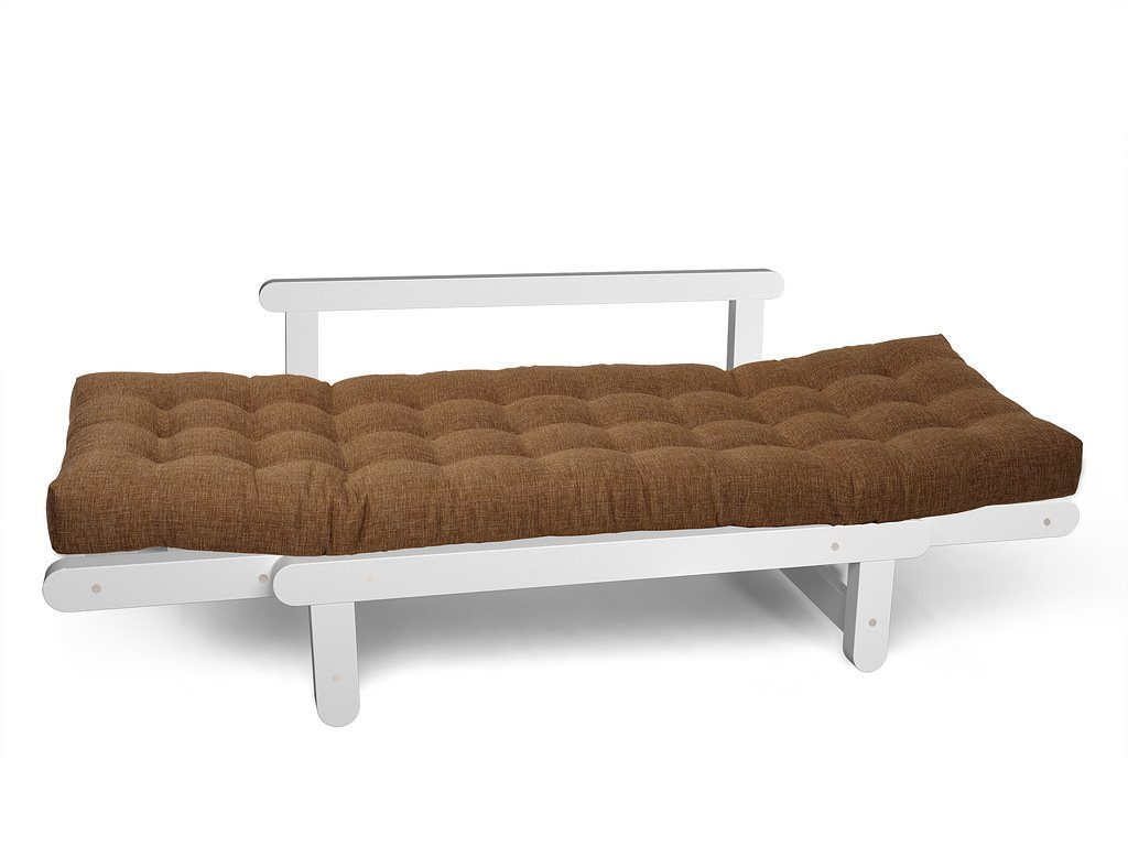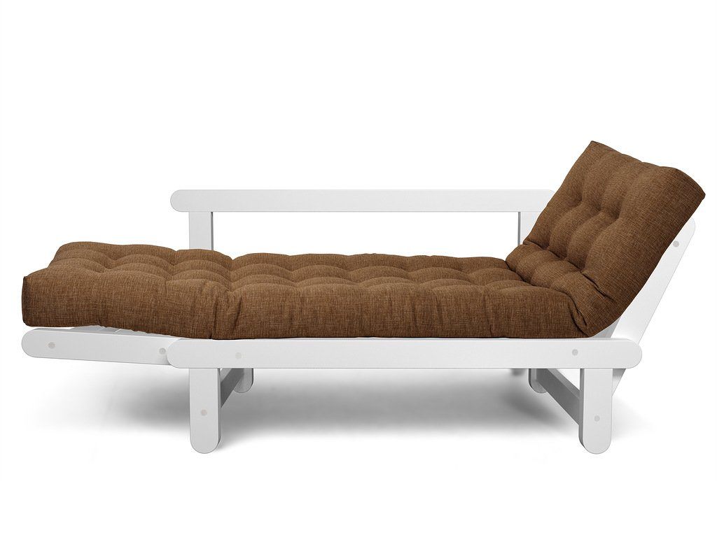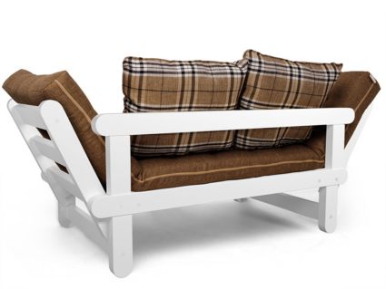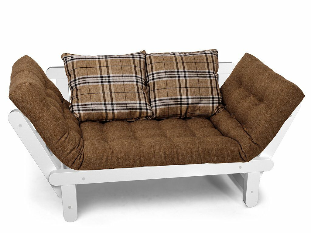 Каркас кушетки изготавливается из массива сосны. Откидные подлокотники имеют два положения, что позволяет, с комфортом разместится двум человекам.