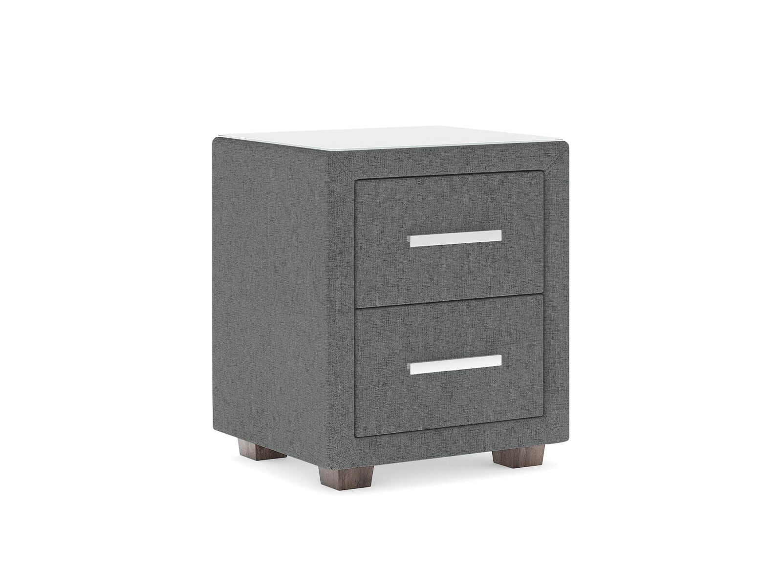 Прикроватная тумба с двумя выдвижными ящиками сочетается с любыми моделями кроватей, органично вписывается в интерьер практически любого стиля. Каркас тумбы выполнен из ДСП. Каркас тумбы и фасад ящиков покрыты обивочным материалом. Для удобства использования и продления срока эксплуатации, рекомендуется использовать стеклянную накладку. Накладка используется в качестве столешницы для тумбы и защищает ее от повреждений и загрязнений. Стеклянная столешница заказывается дополнительно.