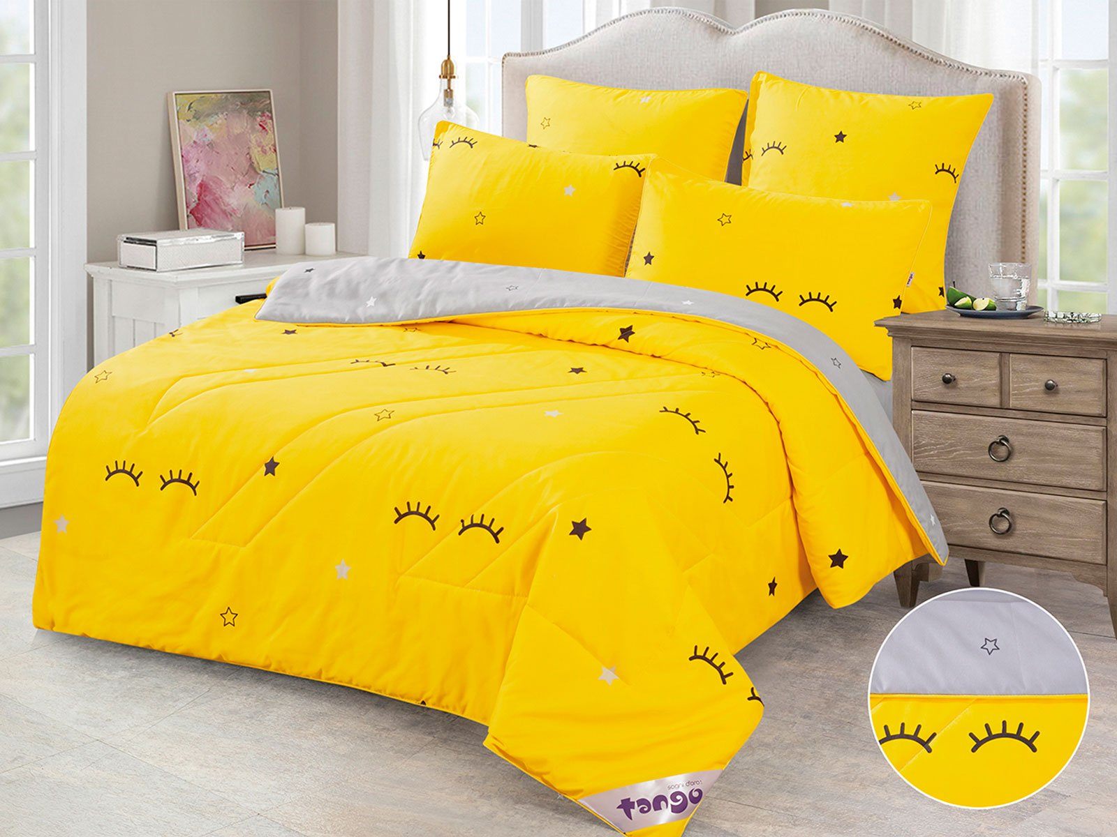 В данный комплект вместо пододеяльника входит облегченное одеяло. Комплект подойдет тем, кто устал от мучительного натягивания пододеяльников на одеяло.